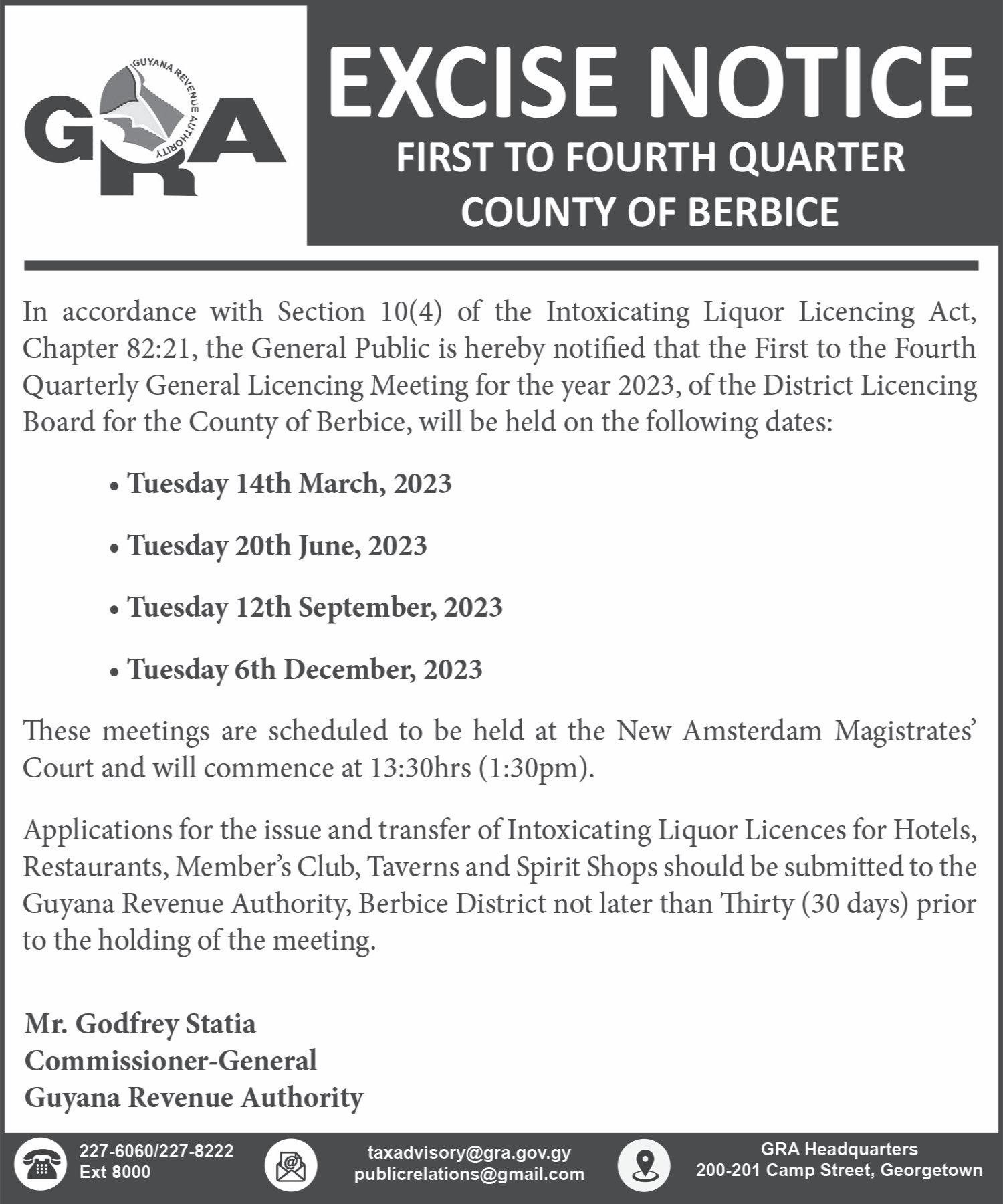 The Guyana Revenue any transaction or offer to Integrated Regional Tax Authority (GRA) on Friday complete transactions in Offices (IRTOs), and the cautioned citizens against exchangeforgifts.” Guyana Post Office the falsification of The Revenue Authority Corporation (GPOC) documents and/or attempts said that with respect to building. Moreover, GRA at colluding with anyone, obtaining provisional has repeatedly published including GRA Officers, to driver’s licences, applicants alternative payment options defraud the Authority in the must first receive the available through the course of completing a OriginalPassLetterfromthe followingentities:transaction. Traffic Certifying Officer of • Online banking