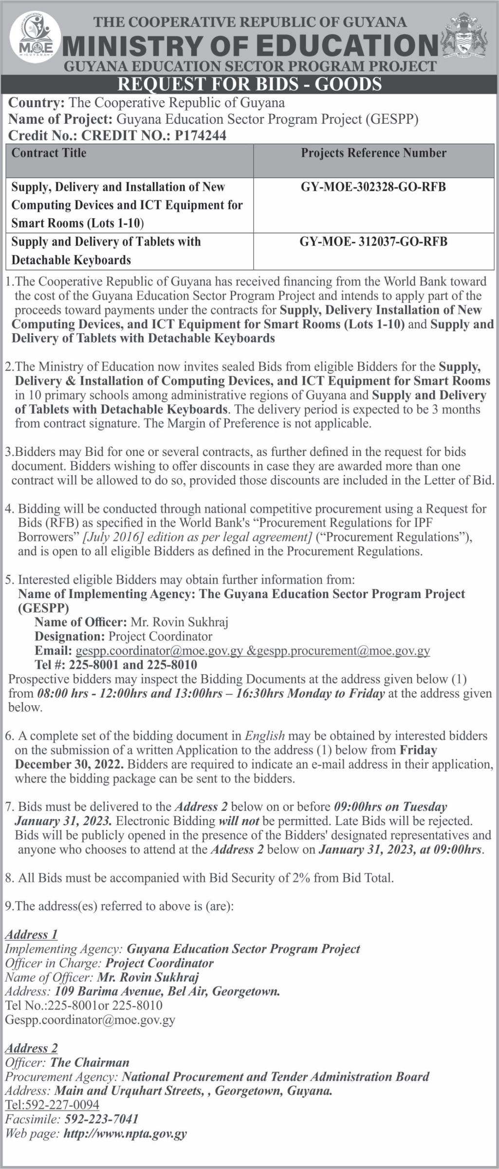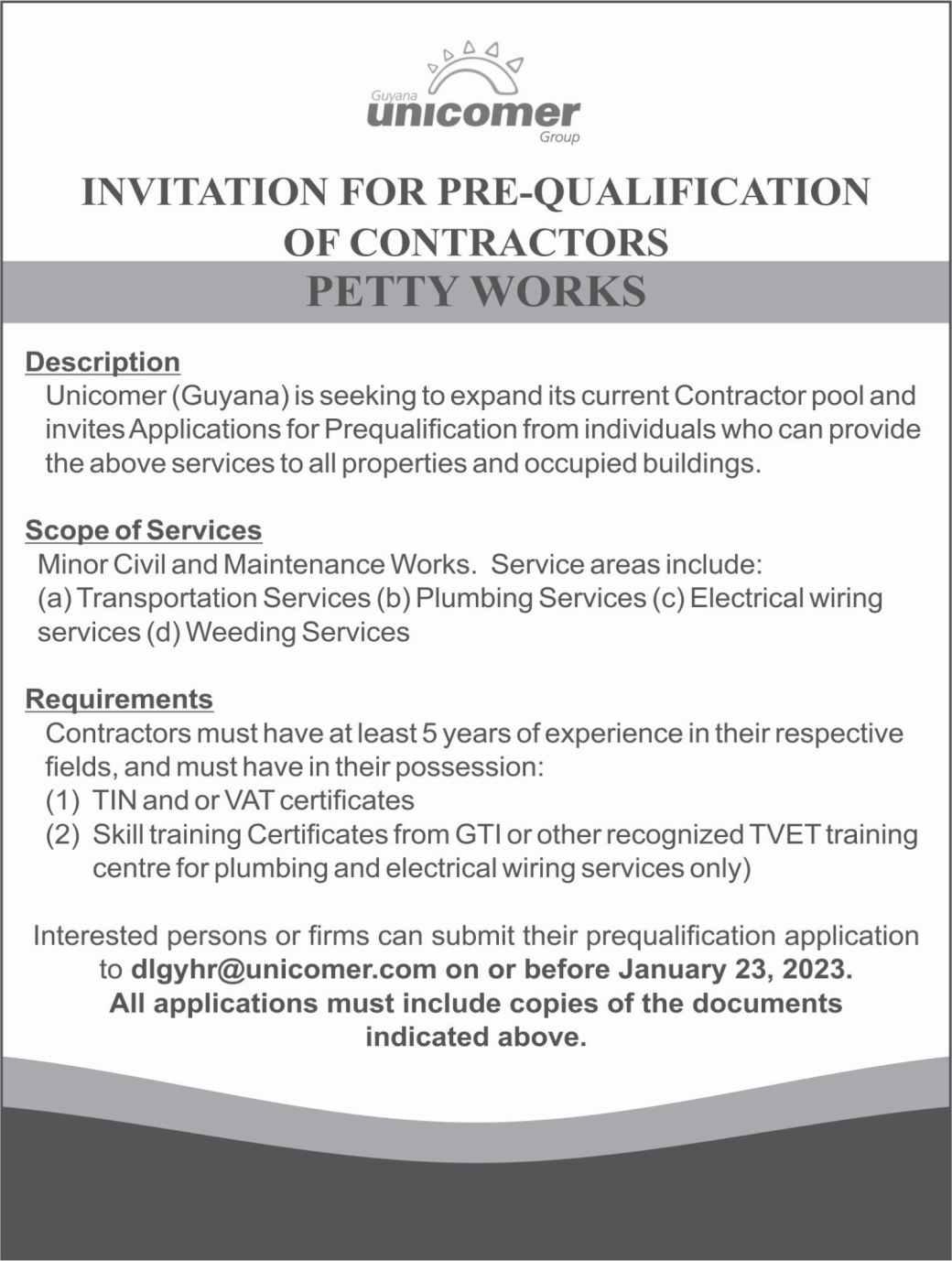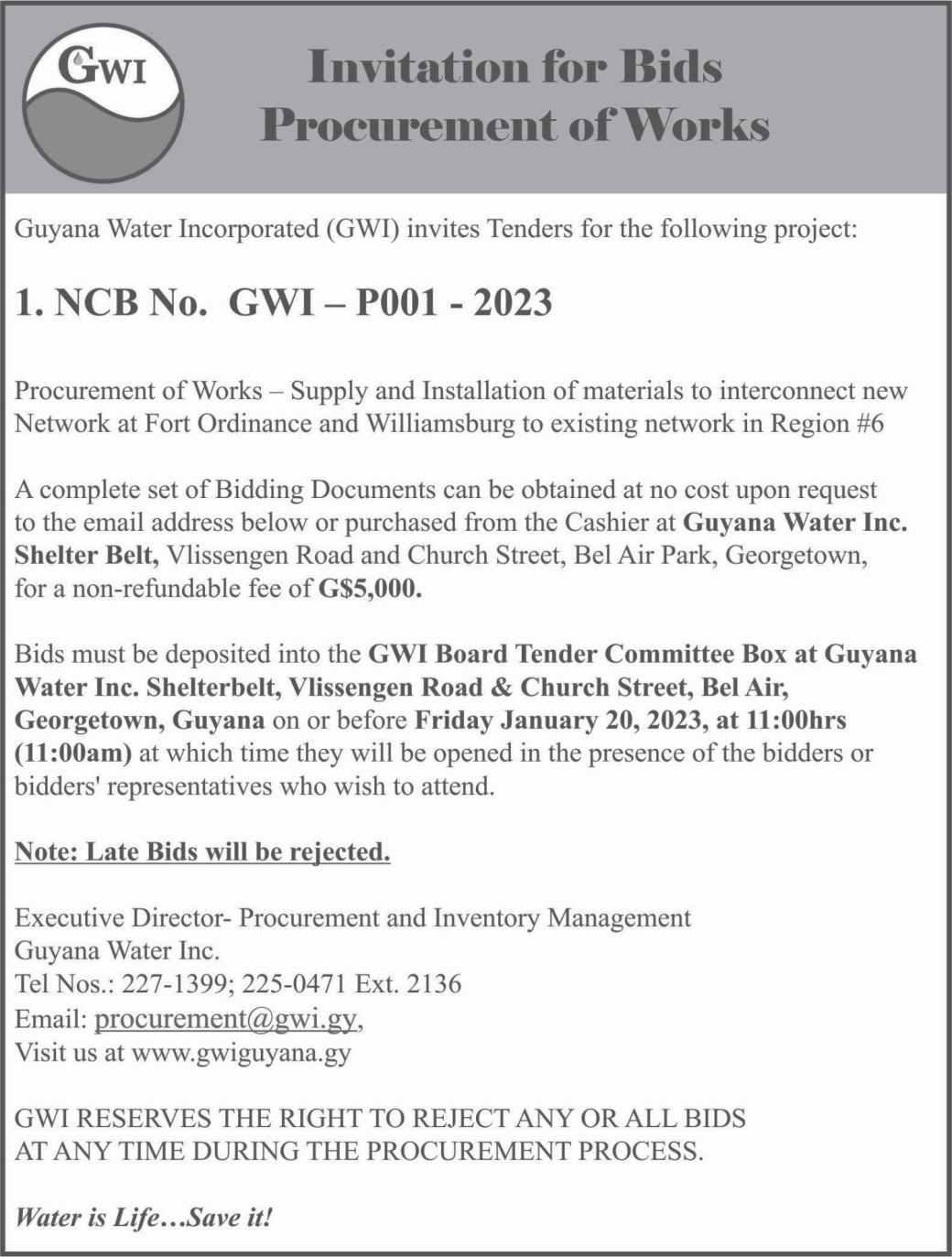 TheMinisterwillreceive whosegazeremainsfixedon passionately supportive kudos for his decisive the lack of completed Bin citizens (PSC), will take to actions in cautioning or Cards and incorrectly the airwaves and lavishly sanctioning the errant recordedLogbooks. praise the transformative contractors; however, little The Public Procurement works included in what will will be said that these Commission (PPC) is in a undoubtedlybethecountry’s contractors should not have comatosestate,eightmonths largest budget, completely even been awarded these afterhavingbeenestablished ignoring the unequitable contractsinthefirstinstance. foritsnewterm,notasingle treatment of many of our These roadworks fall investigation has been citizens. u n d e r t h e M o P W conducted,whilebillionsare Our One Guyana is a Miscellaneous Roads being wasted through two-sided coin, a pair of portfolio and the Standard awards to friends, family, fraternal twins where the Bidding Documents for andfavourites. only equality is being in the these contracts require that The PPC’s excuse for sameplaceatthesametime. eligible contractors have their inaction is that “no The Bonanza that is the specific experience in the complaints have been birthright of all Guyanese last 3 years for similar received to date”, which should result in a minimum projects. leads one to assume that the standard of living that