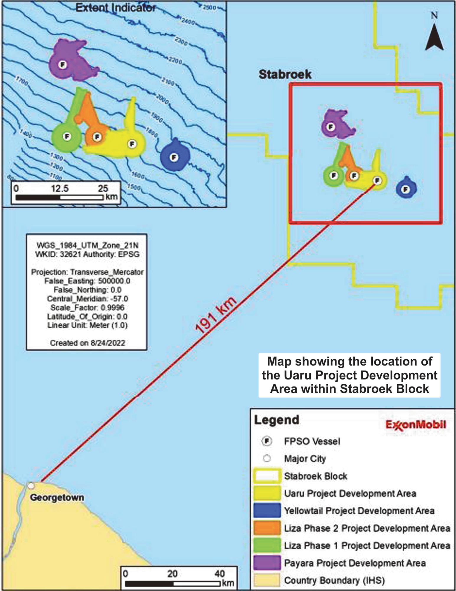 American oil giant, of humans and wildlife. It was consumed as fuel gas on the FPSO said the increases from Project Environmental Impact Assessment E x x o n M o b i l further noted by Exxon that orreinjectedintothereservoir activities would have the potential (EIA) states that the Uaru Corporation, has put Greenhouse gas (GHG) emissions Exxon said other sources of tocontributetohealthimpacts.The Development Project will develop