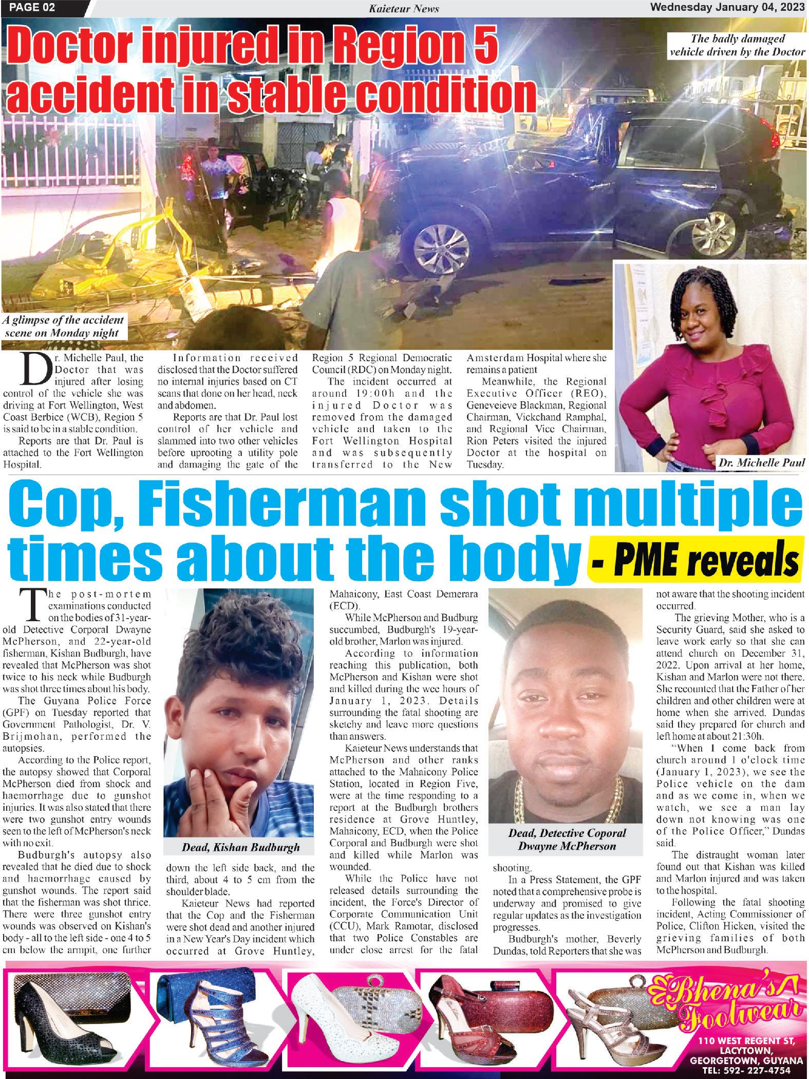 Sincerely, “Guyanese income Put the brakes on that, not Dr JerryJailall increased 50% because PPP the accelerator What Government renegotiated nonsenseisthat?Whyinthis the worst oil contract in the oil-richcountrythatboastsit world?”Our President must has50+%economicgrowth, make sure he presses the we have only 3 operable CT accelerator hard to establish ( C o m p u t e r i s e d modern systems to improve Tomography)scanmachines transparency, governance, for the whole country? Isn’t accountability, disclosure of thatshameful? all agreements involving The President must step on substantial natural resources the accelerator to stop and projects, audit of oil corruption and kickback in accounts, removing all procurement, awards of inequities among the 10 over-priced contracts, regions. shoddy contract work being Presstheacceleratortofixall approved, and disposal of water, health, flood control, national assets and natural power generation, resources The national educational inequities aspirationisthat2023willbe flowing from a useless a breakthrough year against