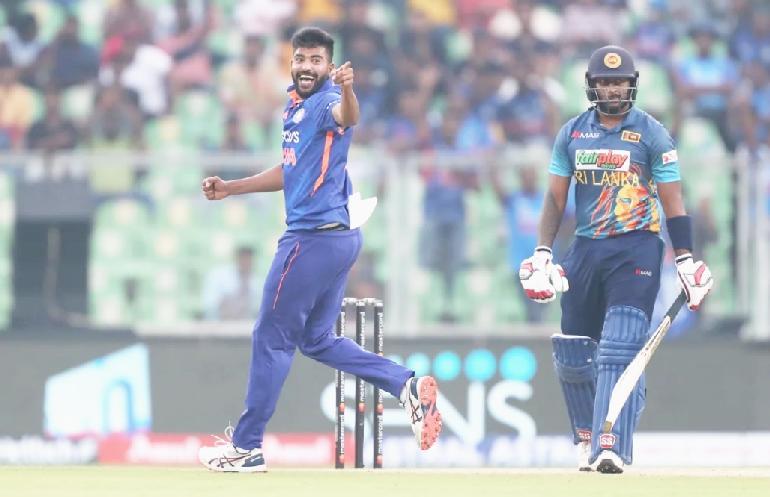 The tourists kept losing wickets to Siraj’s pace and swingandthequickalsoran outKarunaratnewithadirect throw that caught the batsmanoffguardandoutof hiscreaseatthestriker’send.
