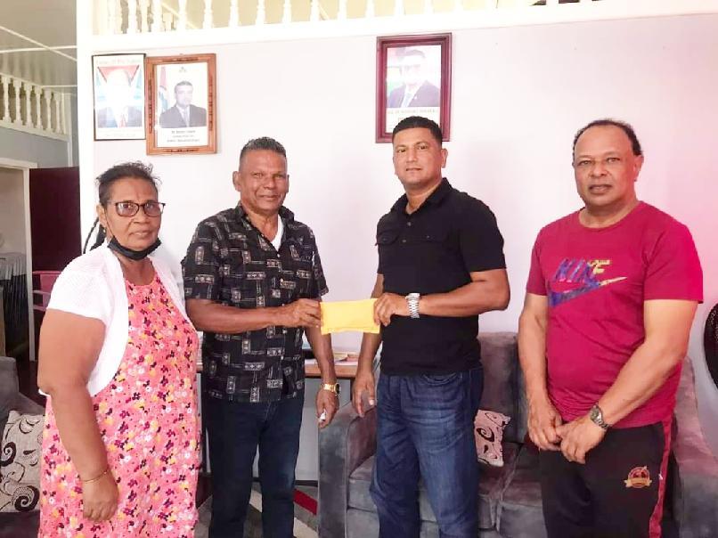 People’s Progressive PartyMemberofParliament FaizalJaffarally,alongterm supporter of the Hilbert Foster led board, handed over a sponsorship package of five hundred thousand