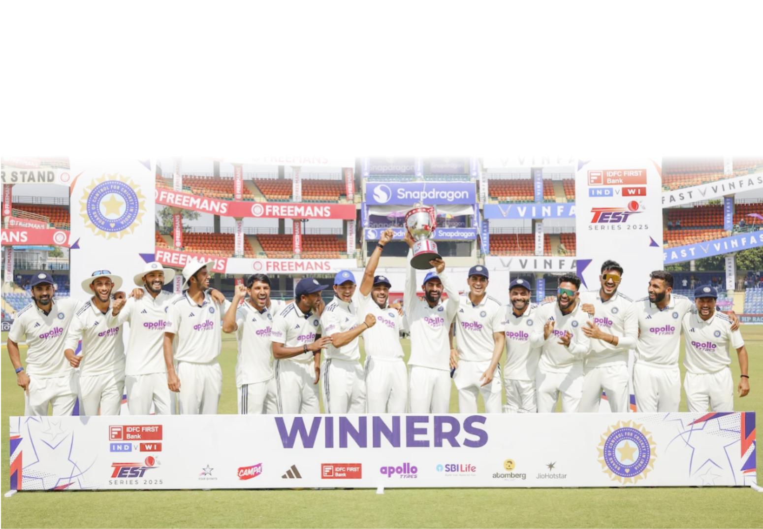 ThiswasIndia’stenthstraightwinagainst West Indies. This was also India’s 122th Test win,goingpastSouthAfricatoNo.3.