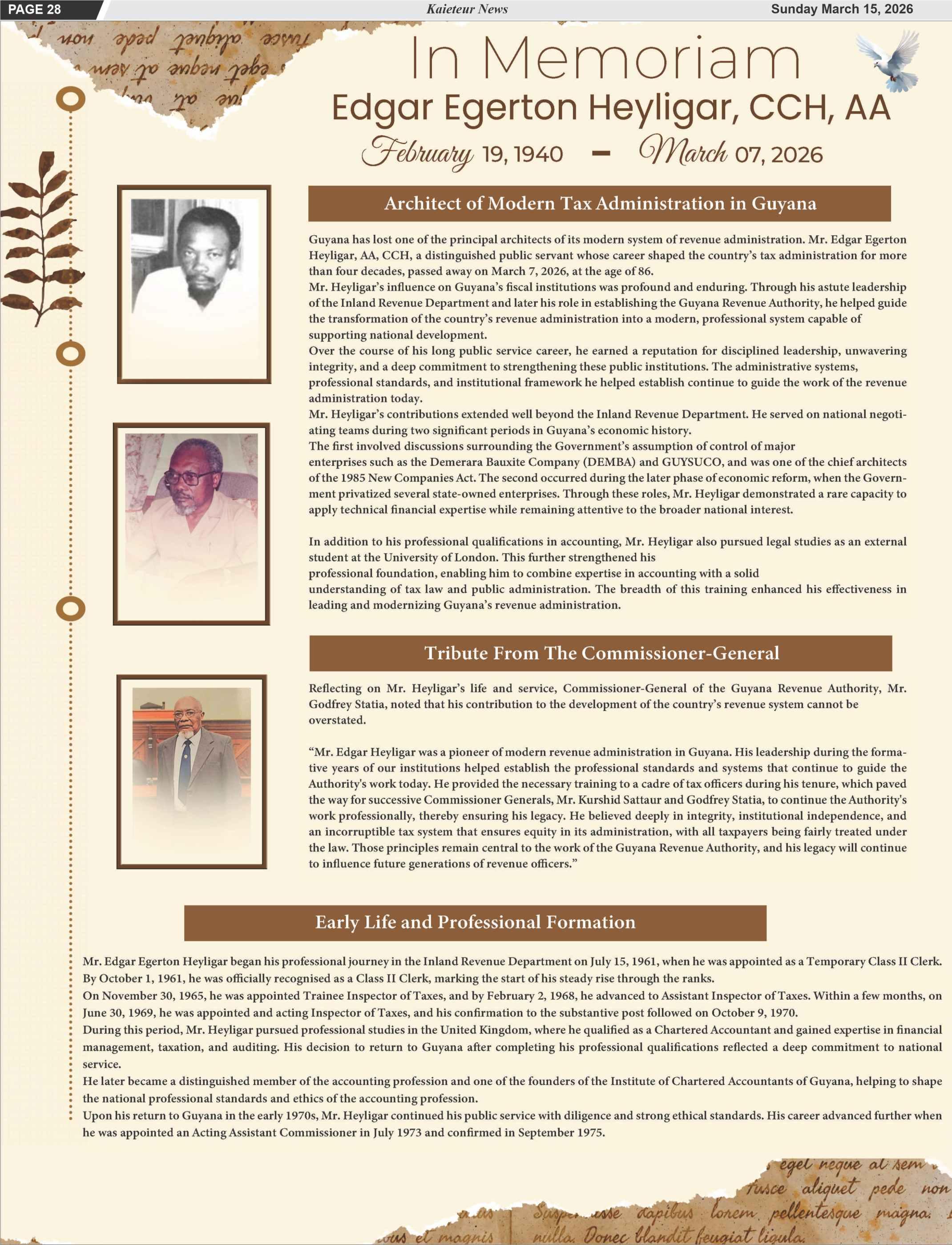 Finally, we wish to acknowledge not only theleadershipofthenewspaperbuttheentire Stabroek News editorial and reporting team whose dedication, professionalism, and courage made the paper a trusted source of informationforGuyanesepeopleirrespective ofclass,politicalaffiliation,race,orreligion.