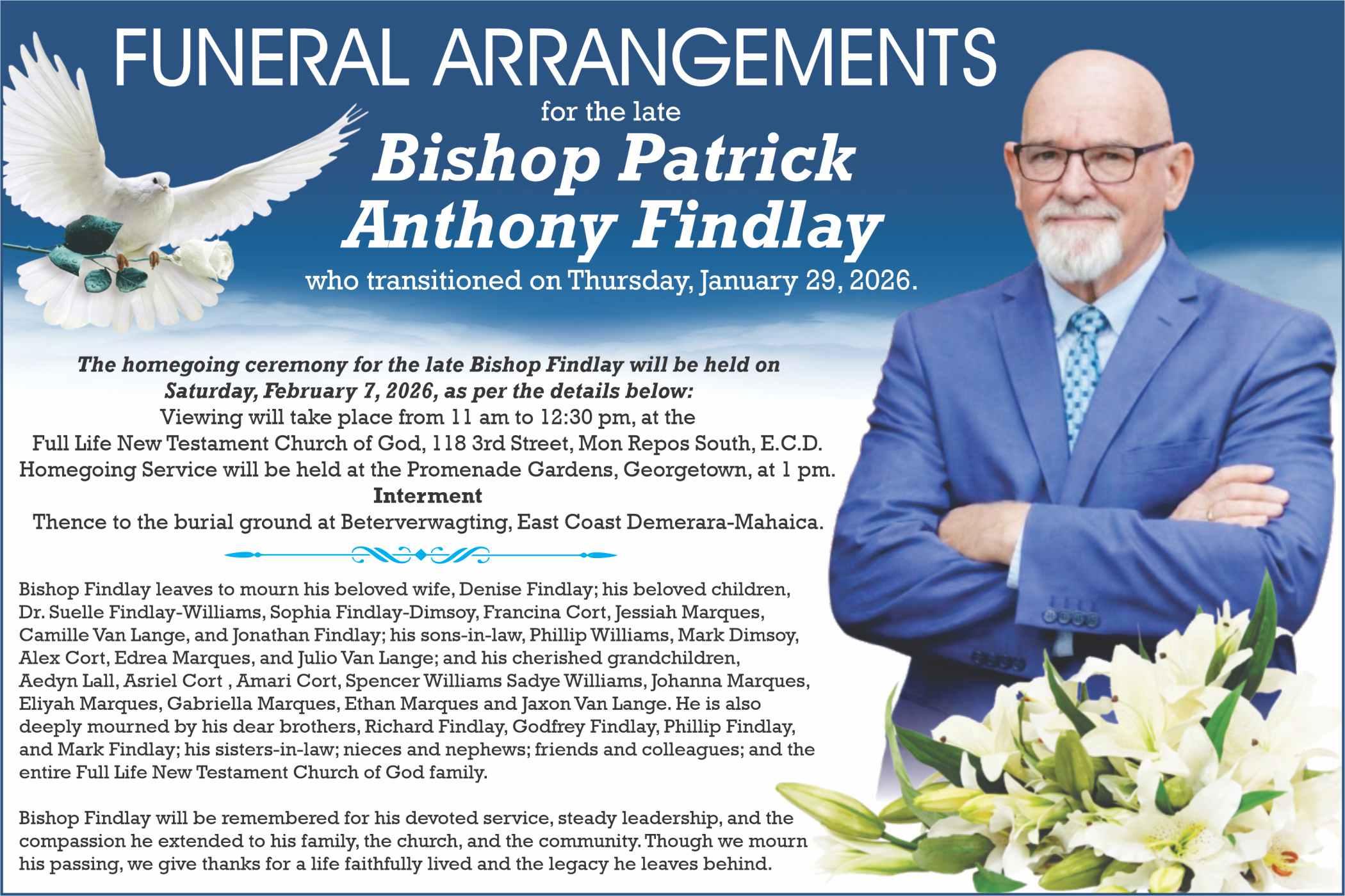 Twenty-five-year-old taxi driver Scott Dorwart of Grove, East Bank Demerara died as a result of the accident. OnFridayJanuary 30, 2026, Kenny was charged with Unlicensed Driver, Breach of Insurance andFaultyPackingofLoad. He appeared before the court, pleaded not guilty to the said charges, and was remanded to prison until February4,2026. OnWednesdayFebruary 4, 2026, he was additionally chargedwithCausingDeath by Dangerous Driving, Failing to Have Proper Control of a Motor Vehicle andMaintenanceofaMotor Vehicle.Hereappearedatthe Diamond/Golden Grove Magistrate’s Court before His Worship Dylon Bess, wherethechargeswereread to him. He was not required