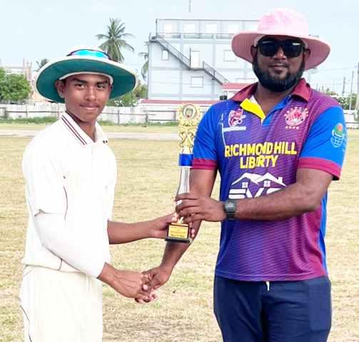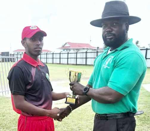 beatensebackandforthbattle. Demerara all-rounder Khan, who was named MVP, snared 2-16 with help from AaronPersaud(2-20),SomeshBoyer(2-16), Seecharran (1-1) alongside two others who returnedascalpeach.