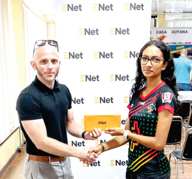 This move comes after ENet was recognised by the N a t i o n a l S p o r t s Commission (NSC) for its continued investment in sport at the recent 2024 national sports awards ceremony for the second consecutiveyear Loweisset to feature on Team Guyana as they look to defend their courts and retain their regional title at the Senior CASA Championships, which will commence this weekend at the National Racquet Centre in Georgetown.