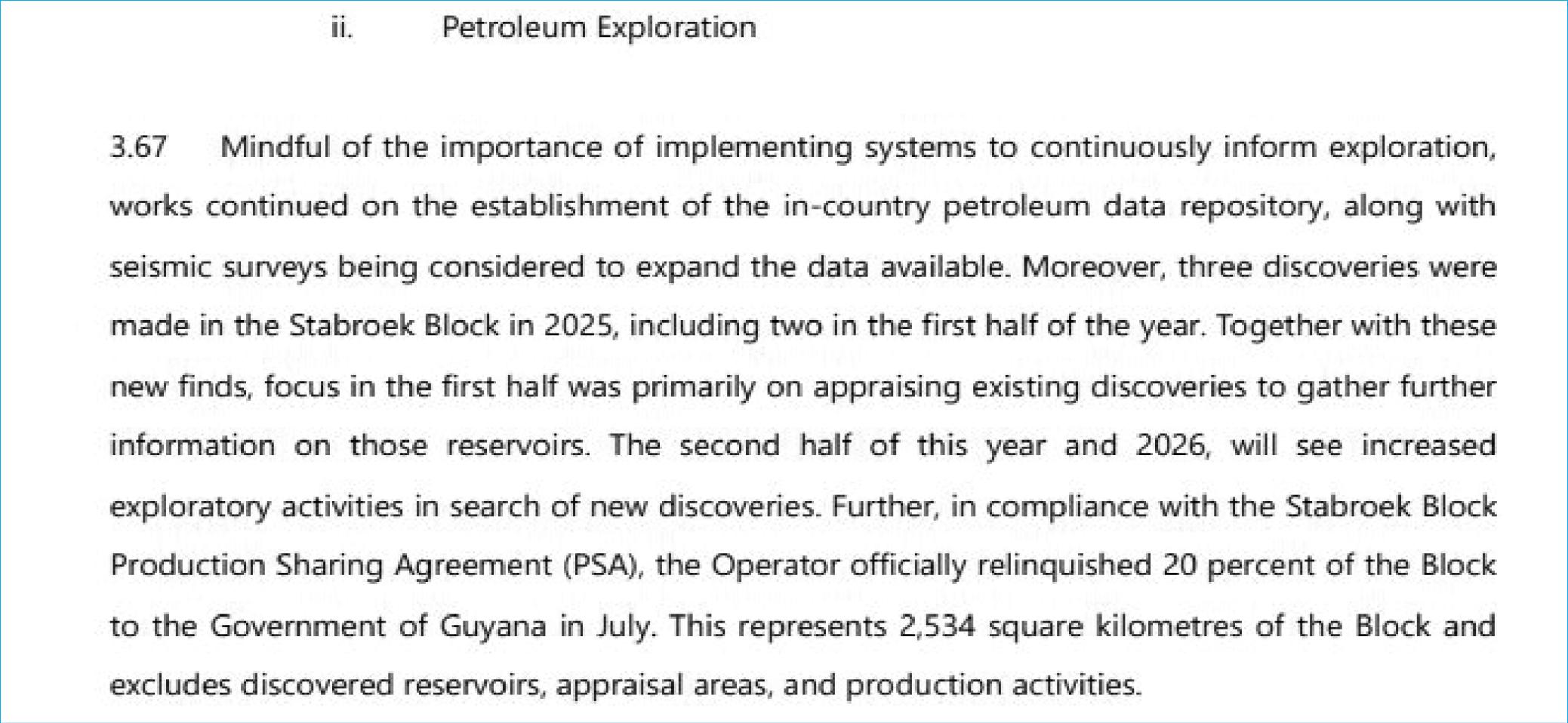 The Mid-Year Report states, “Moreover, three discoveriesweremadeinthe Stabroek Block in 2025, includingtwointhefirsthalf oftheyear.”