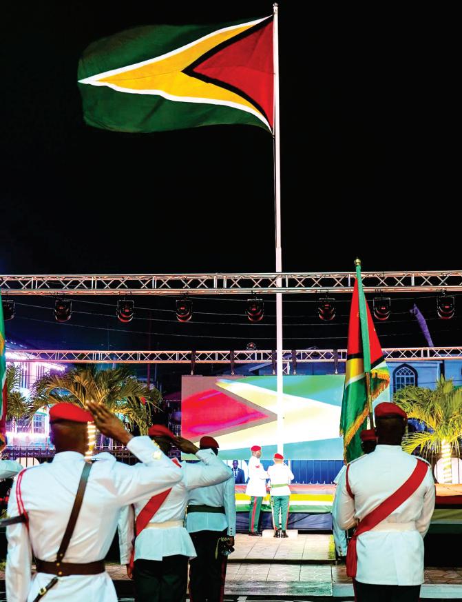 From the coastland villages to the Rupununi savannahs, from bustling markets to quiet farming communities,theheartbeatofGuyanaremainsitspeople. Their resilience has carried this nation through hardship. Theirunitymustnowguideitthroughopportunity Asthe GoldenArrowhead waves proudly, Guyanese can reflect onhowfartherepublichascomeandhowmuchfurtherit cango.Inhonouringthecourageof1970,thenationmust summonequalcouragetoday:tomanagewealthwisely,to protect democratic values fiercely, and to ensure that developmenttoucheseveryvillageandeverychild.United inpurposeandpride,Guyana’srepublicstandsnotonlyas atestamenttosovereigntyachieved,butasapromiseyetto befullyrealised.