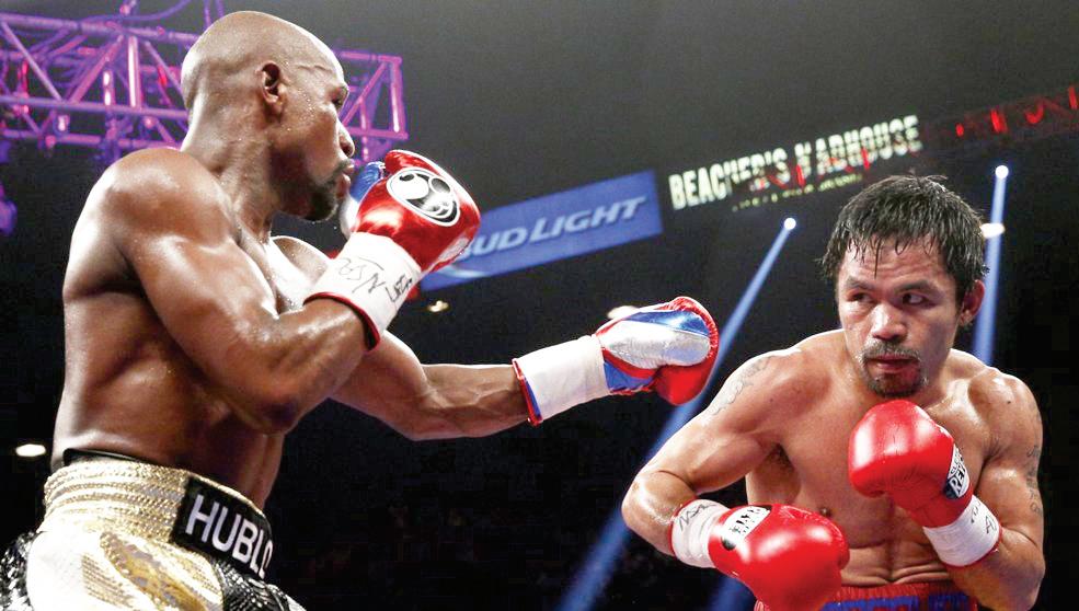 political career in 2021 but returned to the ring last July to fight WBC welterweight champion Mario Barrios, who retained his title after a draw Mayweather and Pacquiaofirstmetin2015,in whatwasbilledasthe‘Fight oftheCentury’. It was Mayweather who