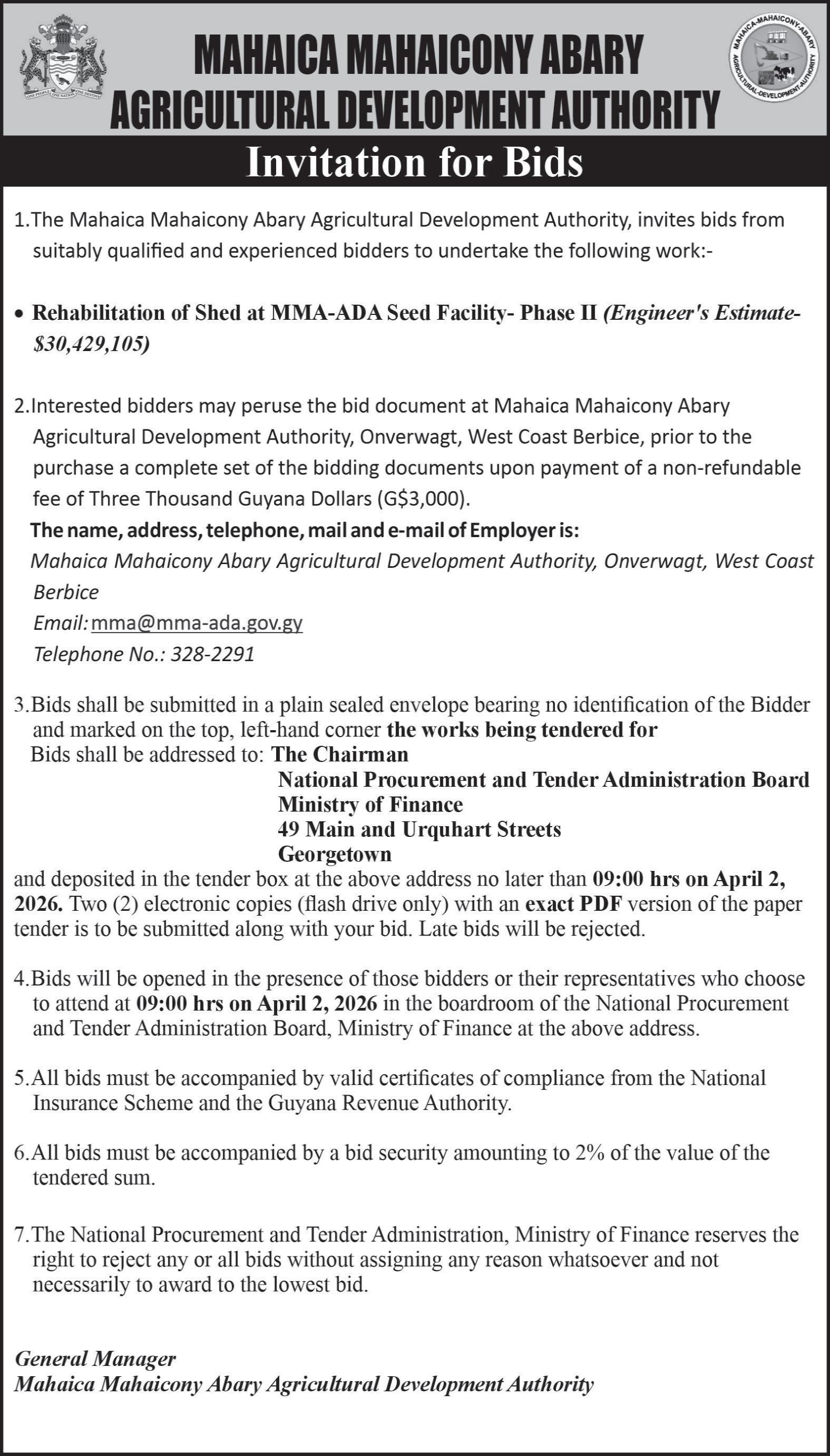 The Ministry of Public Works has announced that there will be a mandatory clearance along David Rose Street, just off of Plaza Bridge,SouthRuimveldt.