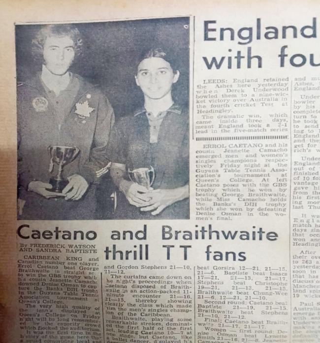 Allan LaRose has highlighted that Guyana's first male Caribbean Table Tennis champion, Canada based, Errol Caetano, has returned to the land of the MajesticKaieteurfallsfora briefstay Caetano'sgrand daughter is representing Guyana at the Concacaf Under17 Football Championship.