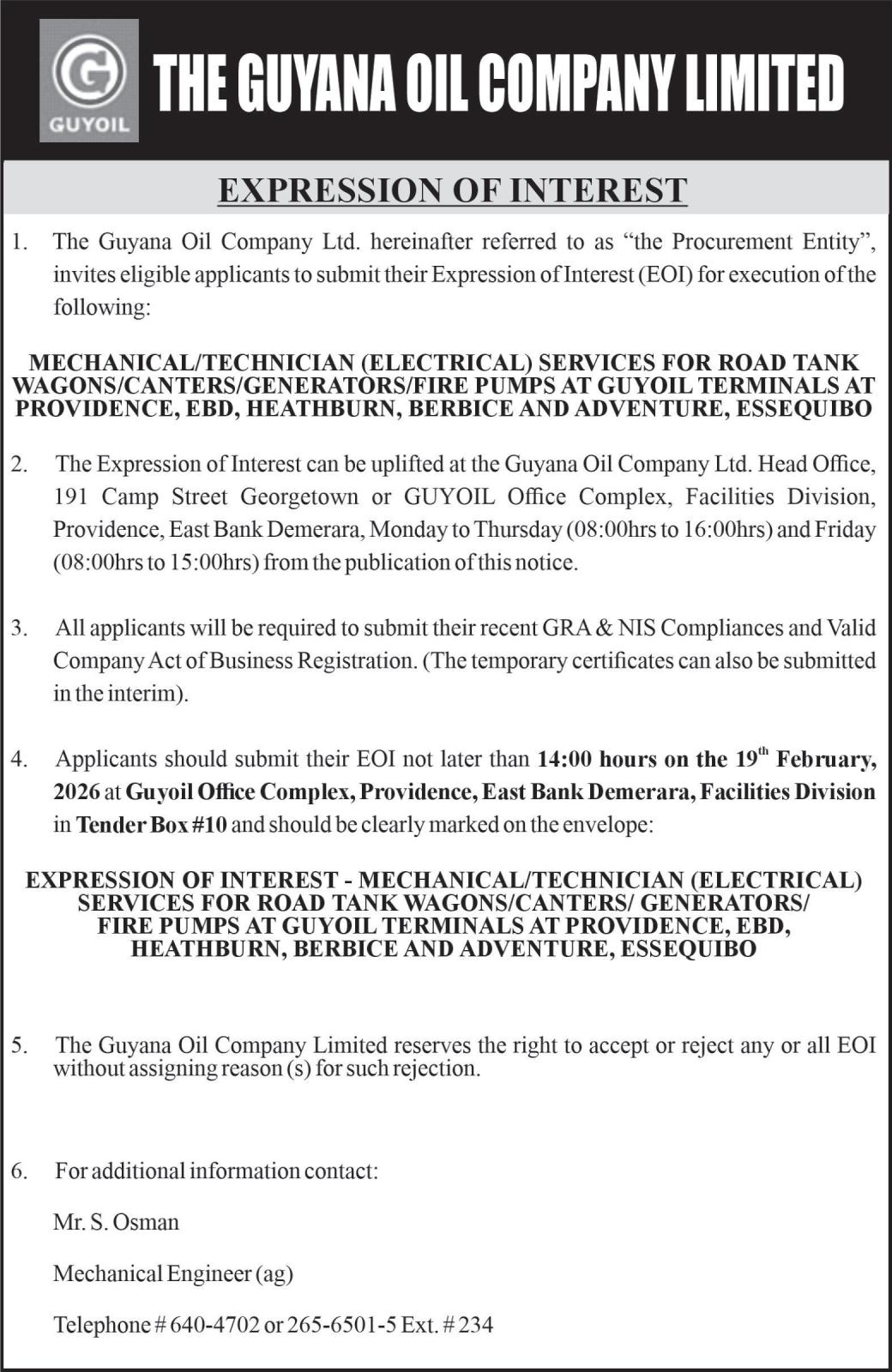 queries to the agency have gone unanswered, with the nation still awaiting an update on the process To this end, Bharrat explained, “I have seen some of the correspondences between Exxon and GRA and they have recently come to a position where they have twosoleexperts. They have narrowed it down to two and I believe withinamonthorsotheyare gonna identify the one that they are going to move forward with because both parties must agree on that sole expert as is specified in theagreement.” Bharrat added that the process will move forward upon the appointment of the sole expert Furthermore,