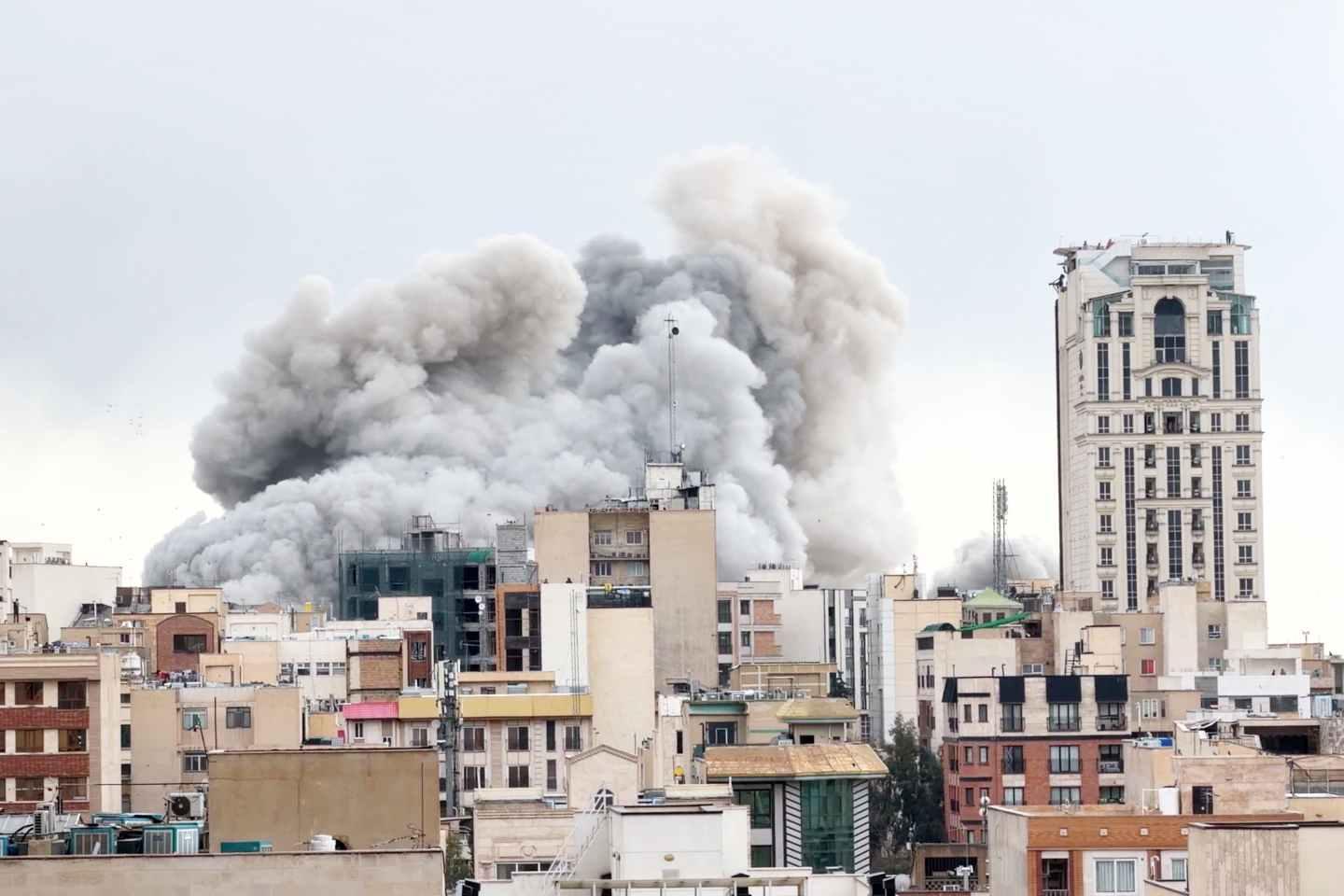 A plume of smoke rises after a strike in Tehran, Iran on Monday. (AP photo)