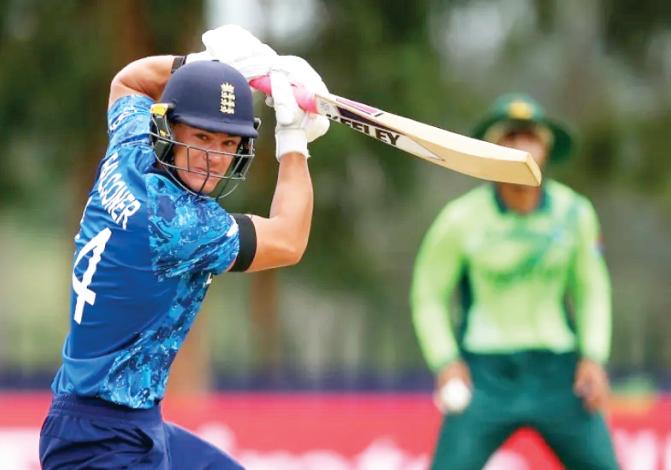 was Momin Qamar’s 18*. Eventually, they were bowled out for 173 as England started with a 37run win after themselves being rescued by Caleb Falconer England’s No. 5 arrivedat67for3inthe16th over,whichsoonbecame90 for4after19onaslowpitch where the ball kept low But Falconer then added 80 for thefifthwicketwithRalphie Albert, and dominated that partnership.Hescored50of those runs, and on the way, broughtuparun-a-ballhalfcenturyinthe29thover Four overs later, Ahmed Hussain broke that partnership by bowling Albert for 25, and finished with 3 for 38 off his ten overs.Falconerfellfor66off 73 deliveries soon after, and