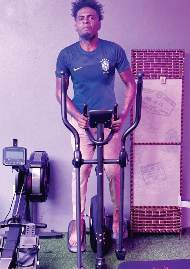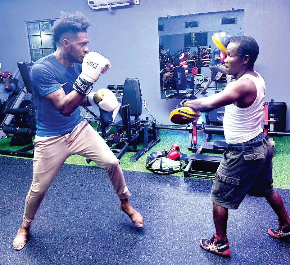 DeClou now training in his home town of Linden, was seen doing his workout at the ‘Inspire Fitness By Kevin’s gym in Blueberry Hill, Wismar with coach Orlon ‘Pocket Rocket’ Rogers,saidthismainevent