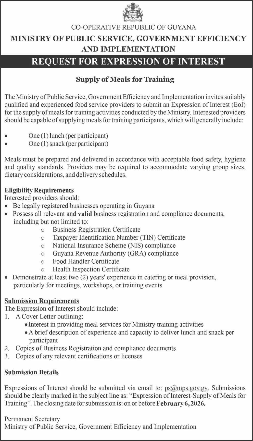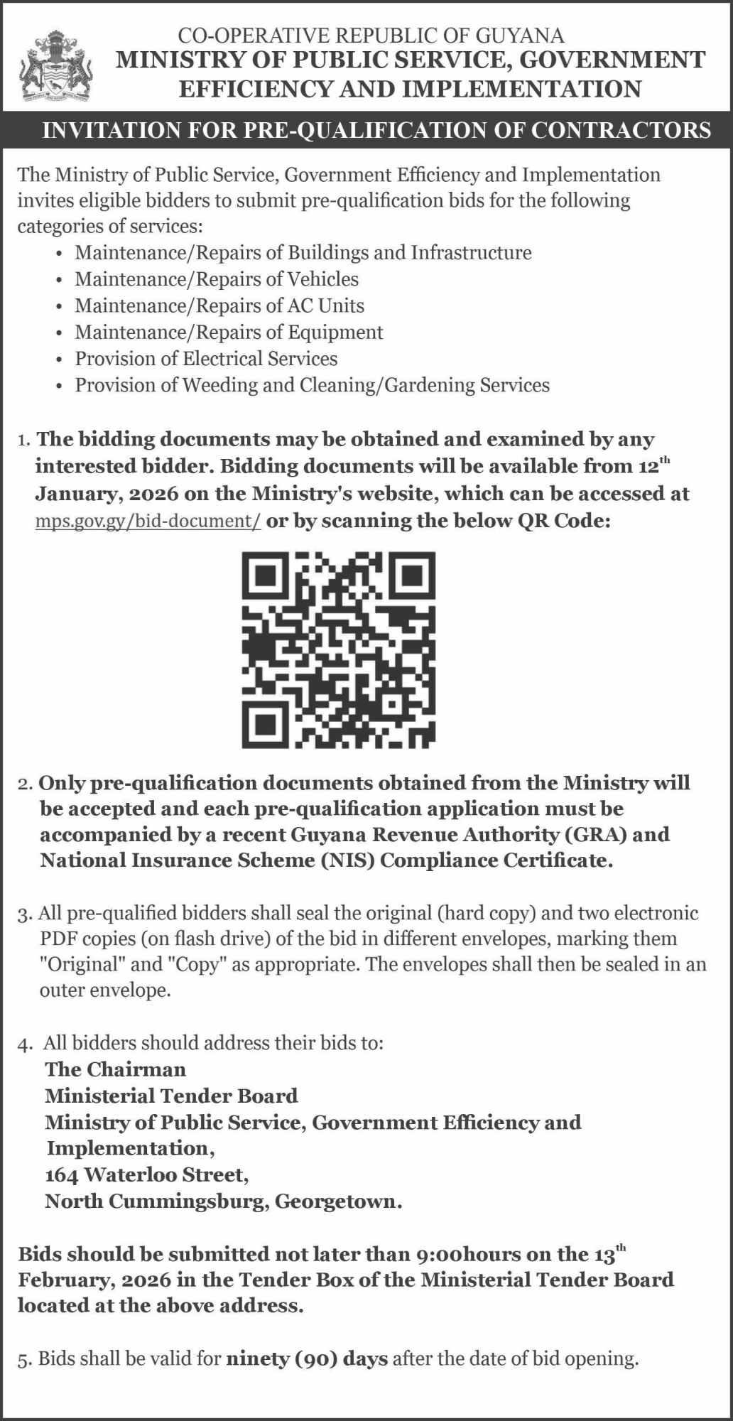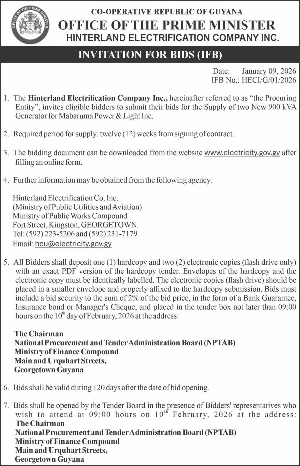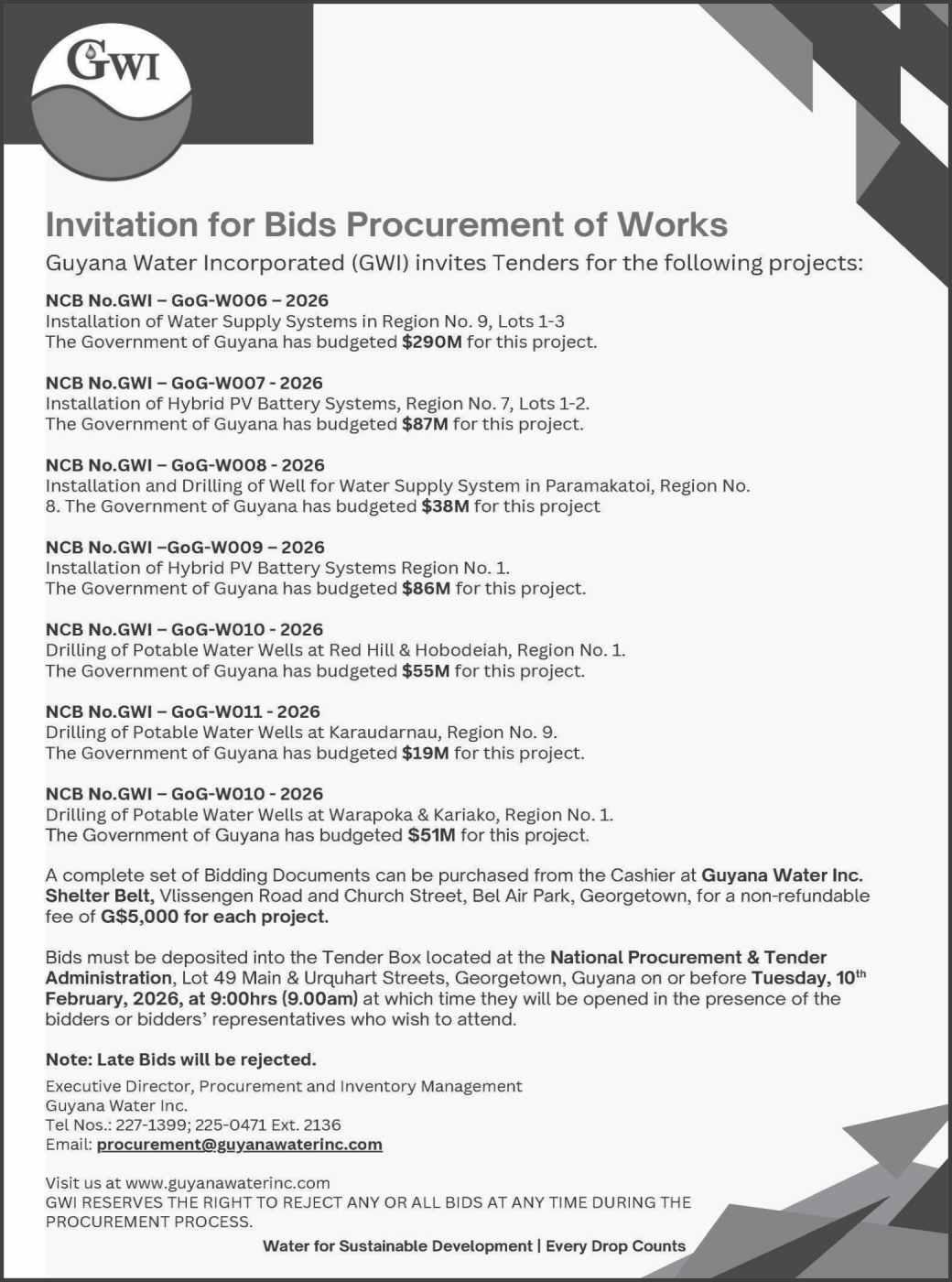 The works will be executed through the Ministry's Special Projects Unit (SPU), with a community participation model of 50 persons. International Import and Supplies will be supplying the