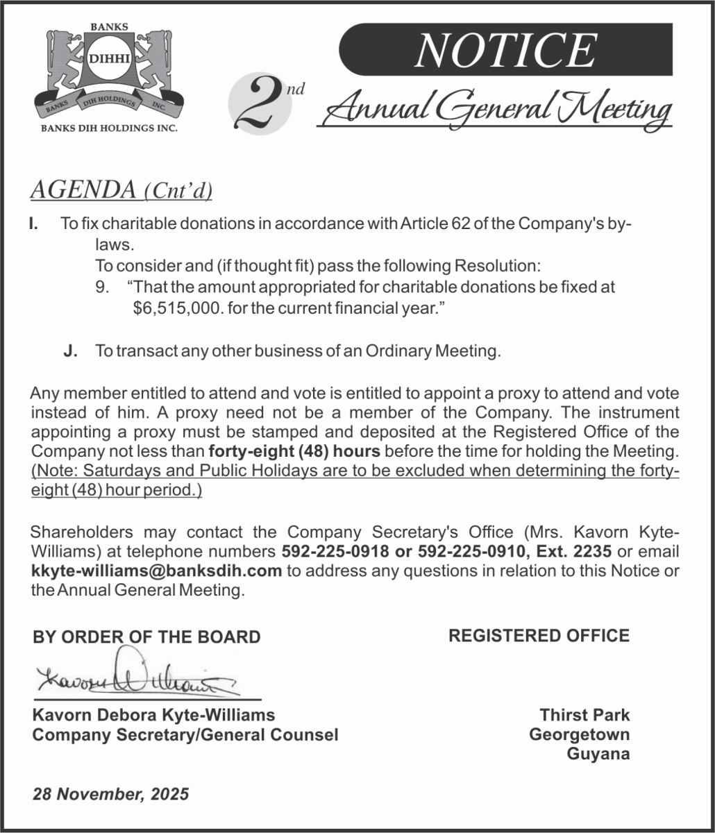 Printed and Published by National Media & Publishing Company Ltd. 24 Saffon Street, Charlestown, Georgetown, Guyana.