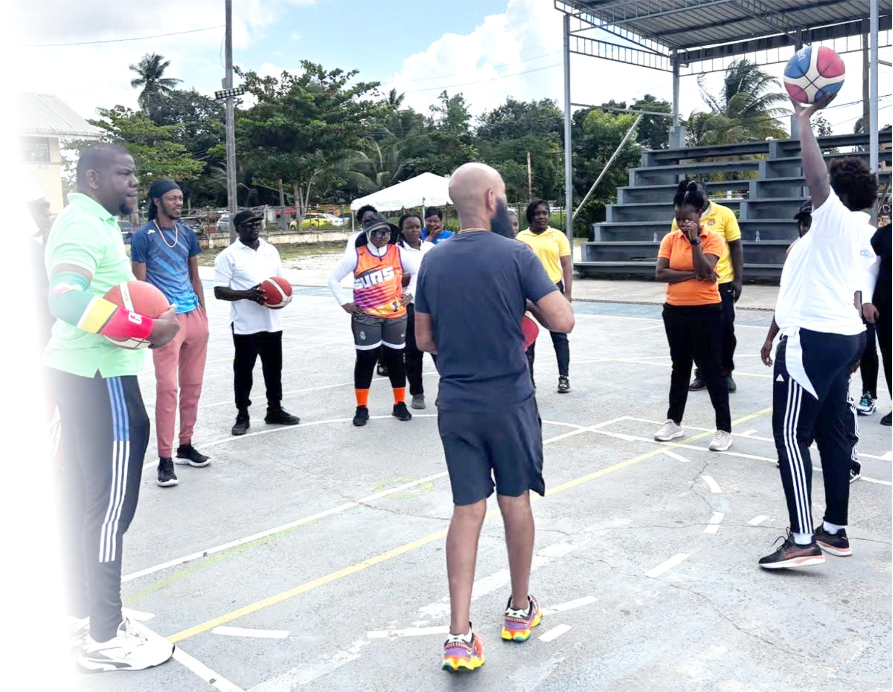 Amateur Basketball Association (LABA) on the staging of a basic basketball course last Wednesday for teachers in Linden at the Community Hard Court in Retrieve, with the aim of bringing more basketball officials to the game to improve youth basketball development.