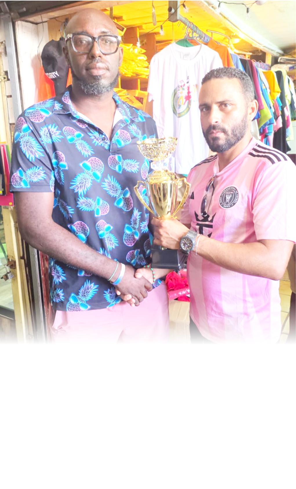 The Club, which is located in the compound of GBTI on Diamond Public Road, is being partially funded by Trophy Stall for the second consecutive year at this event. Trophy Stall's Ernesto Amet Mesa Vilorio made a presentation of trophies on behalf of Proprietor Ramesh Sunich to AndreErskineoftheClubfor theongoingevent.