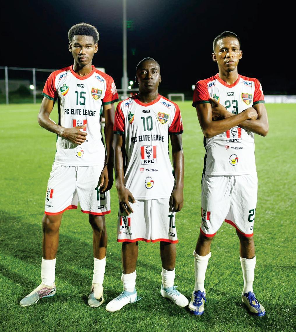 Monedderlust FC goal scorers Niron Thom, Stephon Moore and Azainned Benjamin.