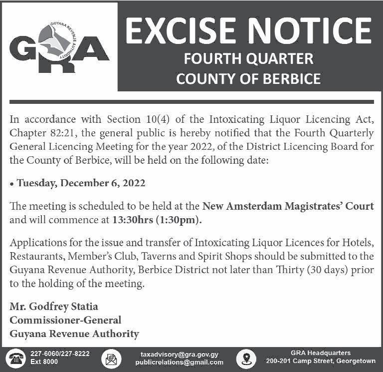 Acheques to the Guyana Revenue dishonoured cheques due to insufficient Authority (GRA) and the agency, in hopes of funds will be blacklisted and not allowed to quelling the practice, has warned that the make payments by personal cheques for a culprits could find themselves before the minimum period of six months in the first court of law In a press release issued on instance, 12 months in the second instance Friday, the GRAmade it clear that taxpayers andpermanentlythereafter and their representatives making payments Payments effected by such defaulters byusingdishonouredchequesmaybesubject must thereafter be by cash if less than $2 to prosecution under the Criminal Law million(inkeepingwithAMLregulations)or (Offences Act) Chapter 8:01, with those by Manager’s drafts for any amount. Such found guilty in a court of law subjected to defaultingtaxpayerswillberequiredtomake imprisonment. This warning, it noted, is all future payments by either Manager’s necessary in view of the increasingly chequeorcash,dependingontheamount. prevalent practice of uttering dishonoured Furthermore,taxpayersareremindedthat chequestotheAuthority GRA will not accept cash payments