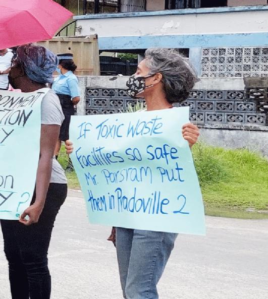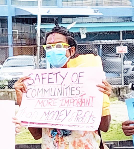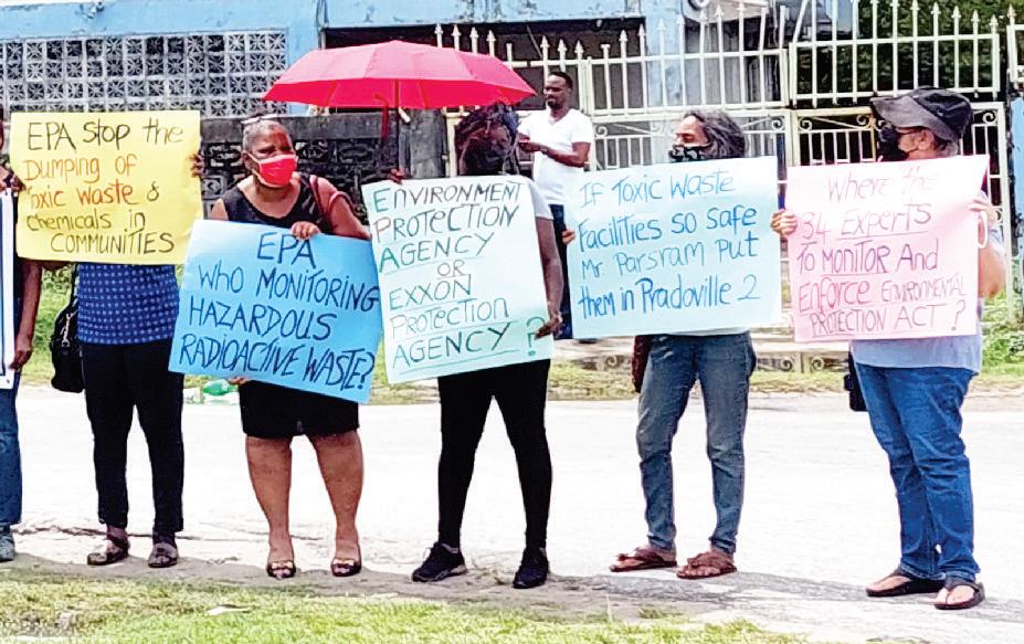 On Friday last,WintressWhite, one of the 40 members of Red Thread participated in a picket exercise outside the Environmental Protection Agency's (EPA's) Ganges Street, Georgetown Head Office lobbying the body to perform its mandate of safeguarding the environment. In an invited comment, White told Kaieteur News that Guyana and its people are not benefiting from the exploitation of its oil and gas resources. To this end, she argued that the least Exxon can do, which is walking away with the major beneficiary, is leave the country cleanforfuturegenerations.