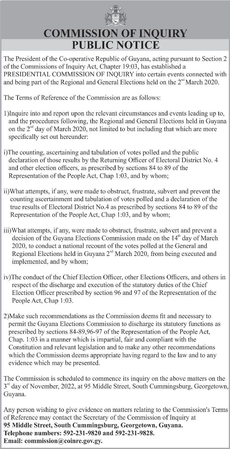 The first one concerns partially sets the tone of Stabroek News (October 14, Freddie’show(September9, direct and constitute ample progress. He answered the thebewilderingbehaviourof political engagement both in 2022) “…PNC Member of 2022). It was refreshing to proof that freedom of question with one word – Opposition Leader, Aubrey and out of parliament. But Parliament for Region 10, see someone truly from, and expressioninGuyanaisalive discipline.