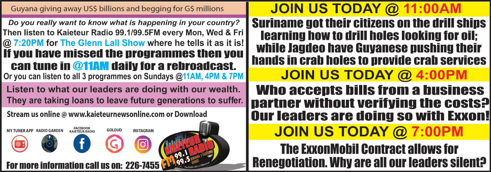- Aubrey NortonAfourmonthauditintothebills update as to whether the review they refuse to increase the capacity & Consultancy Inc. was awardedhanded to Guyana by oil giant, process has been completed or if of those institutions to do what is the contract to review Exxon’sExxonMobil, over the years 2018 the team conducting the audit was necessary and so again I repeat, expenditure The Localto 2020 was scheduled to be grantedadditionaltimetocomplete there must be mechanisms for Consortium is supported bycompleted in September of this theirwork. auditing, there should be International firms - SGS andyear,butalthoughthefindingsfrom To this end, Norton in response mechanisms.” Martindale Consultants for thethatreviewwillsoonbeoverdueby to a question from this newspaper