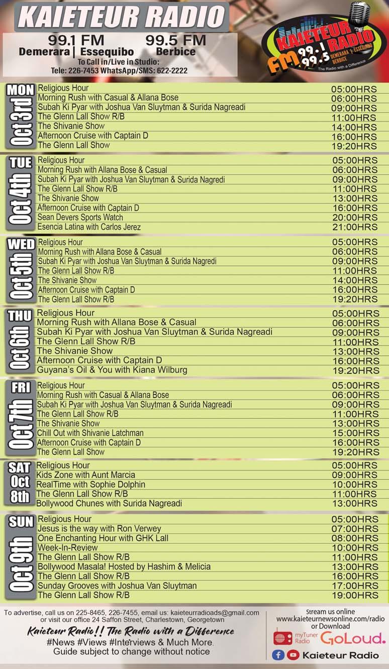 AIETEUR NEWSK Guyana’s largest selling daily & New York’s most popular weekly Online: www.kaieteurnews.com October03,2022-Vol.15 No.37 Online readership yesterday, 64,391 Monday Edition Price $100