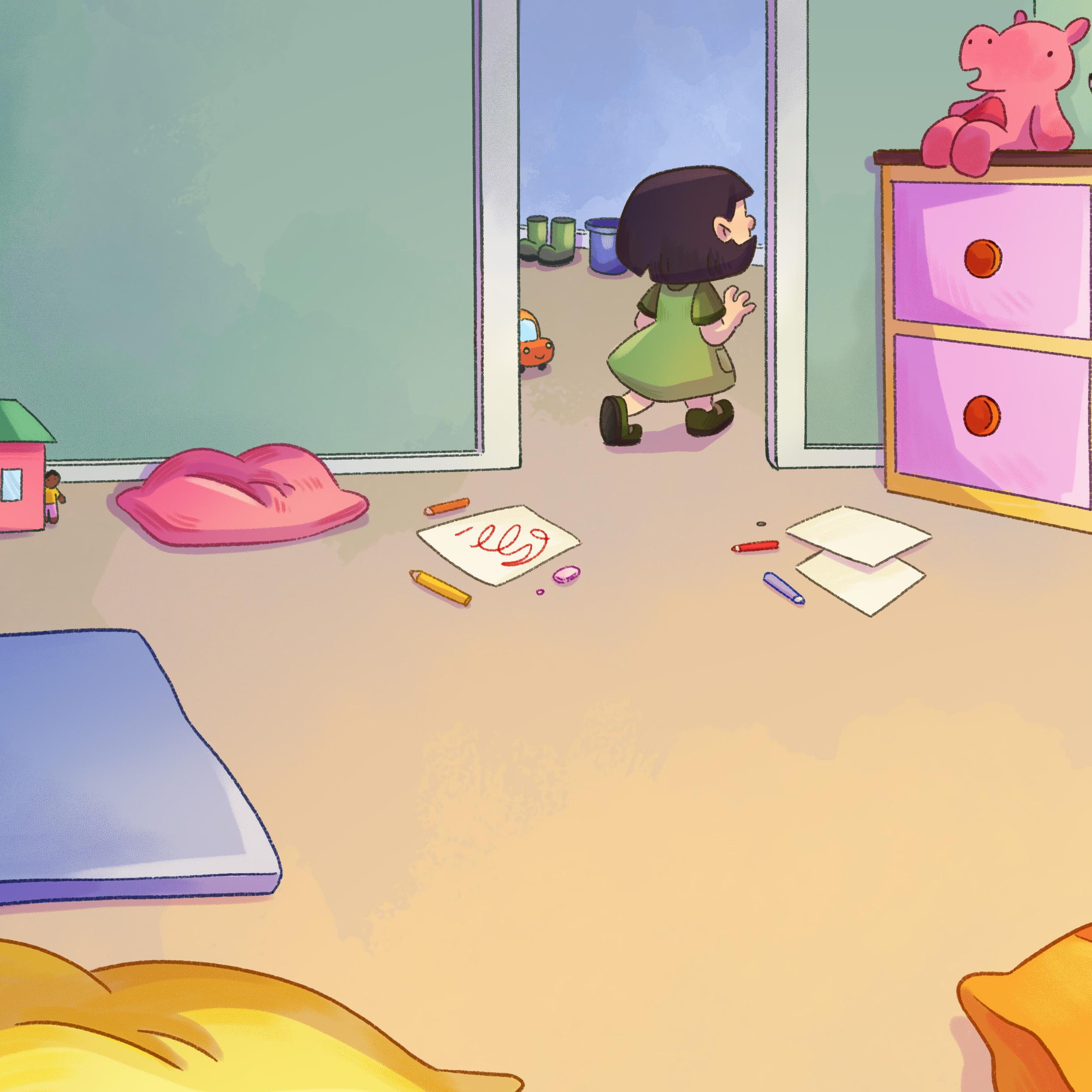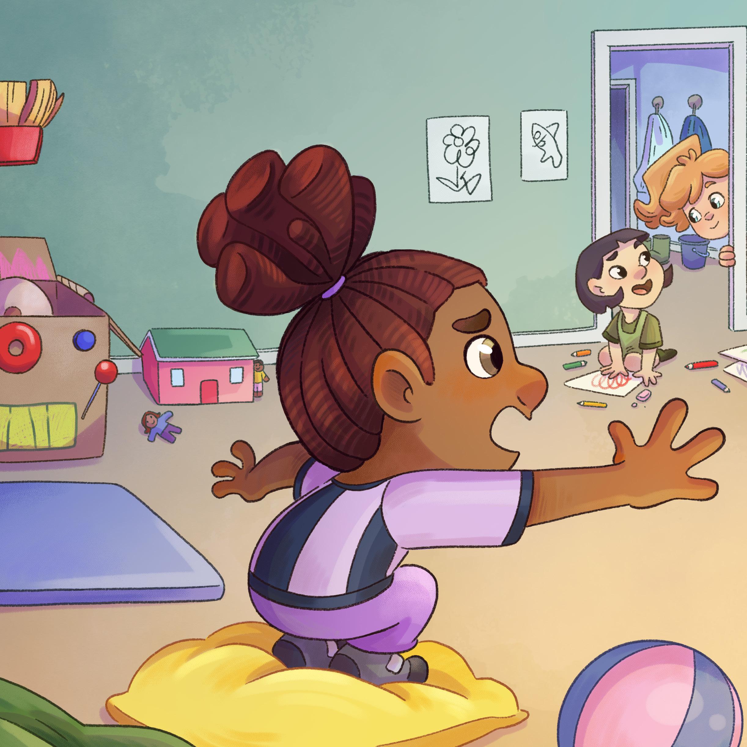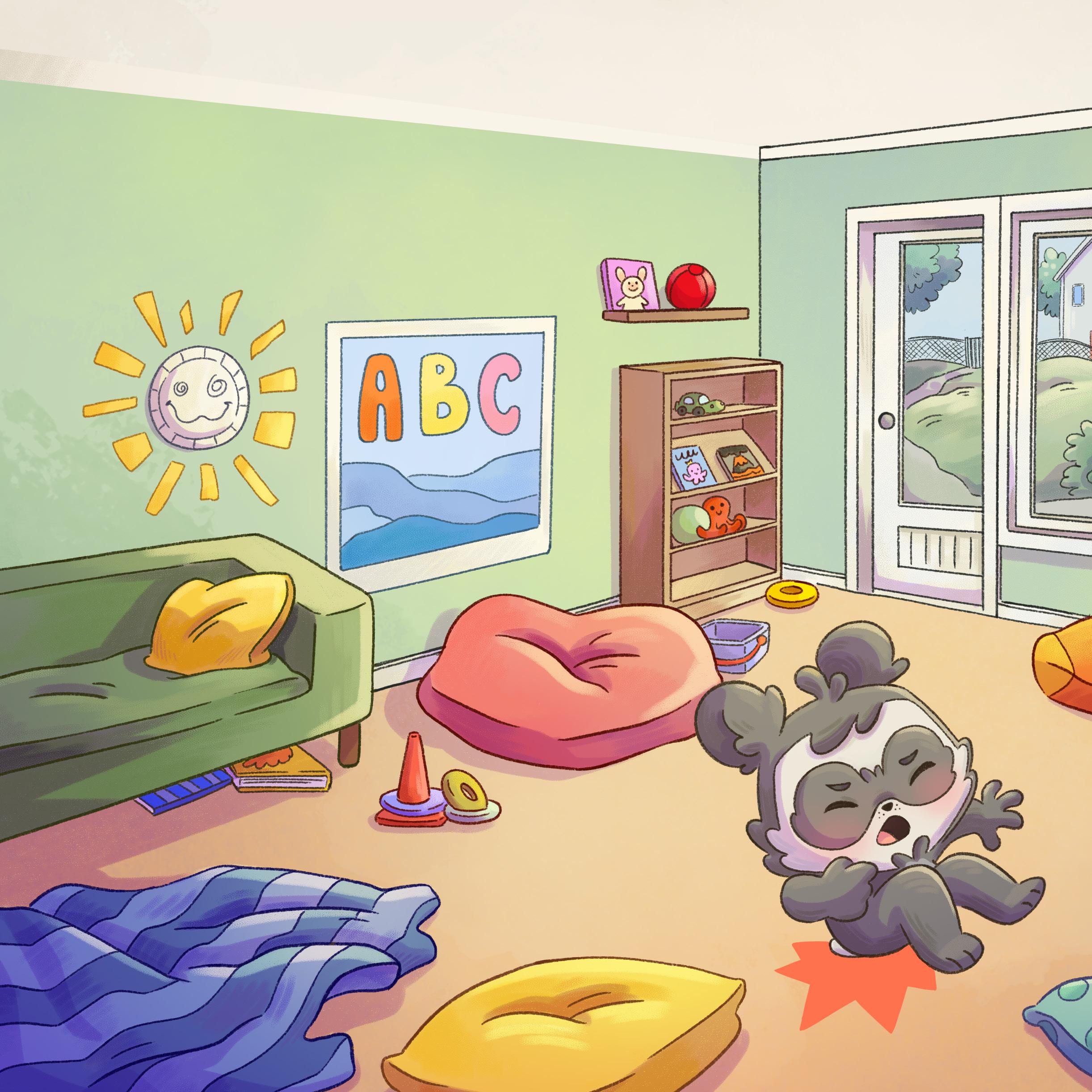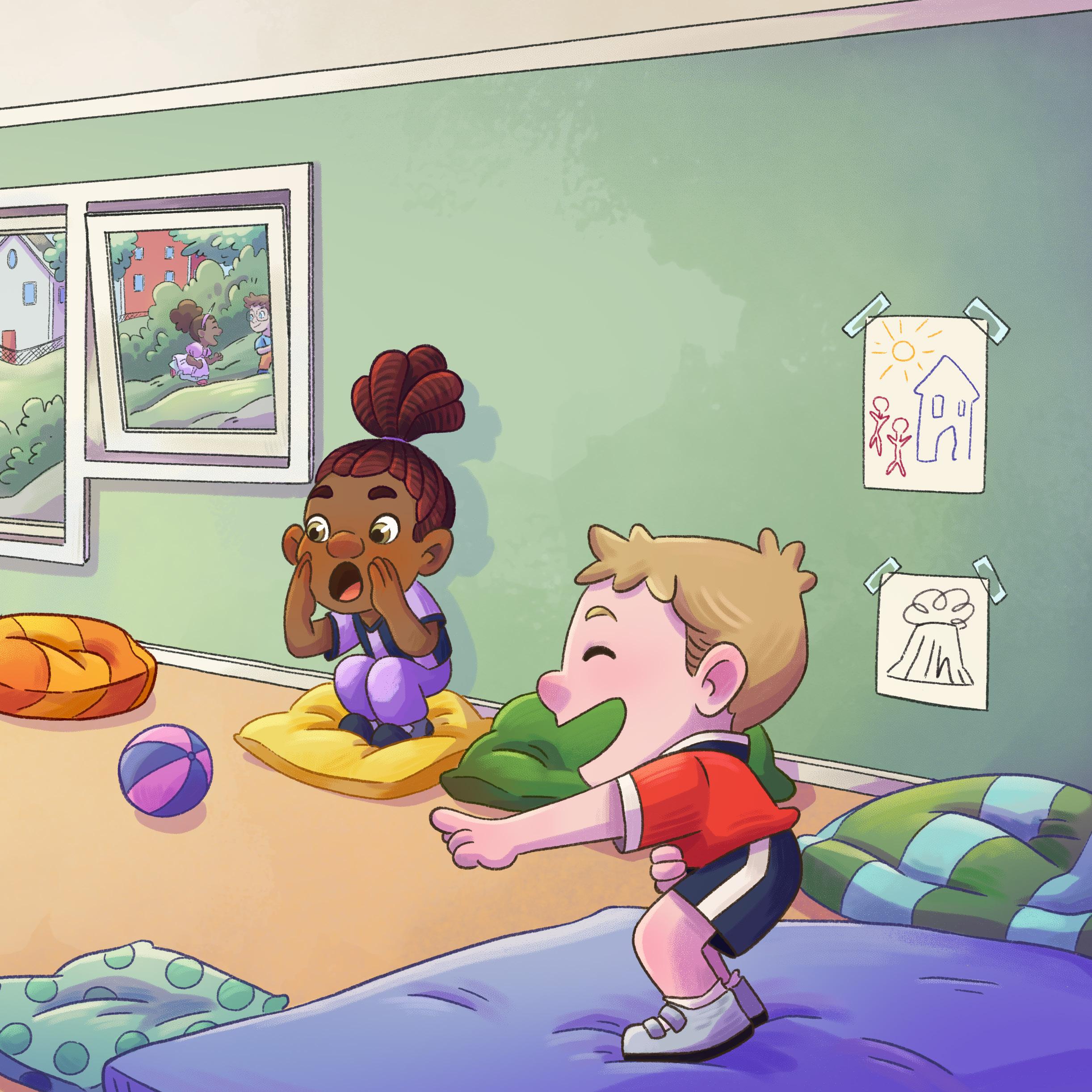 – Ikke tråkk på gulvet! Gulvet er lava! roper Wilma.
