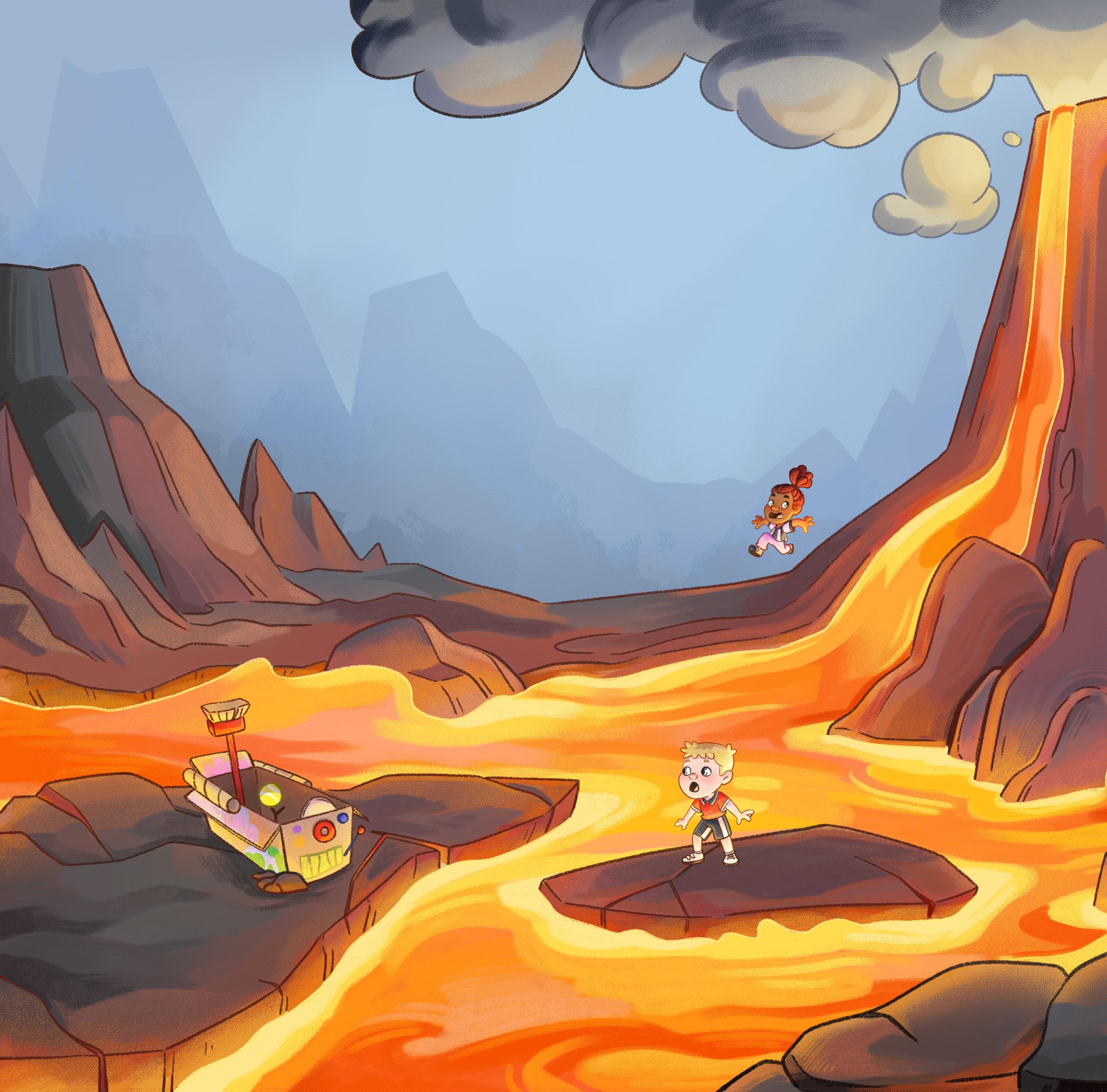 stein på nært hold. Men hva gjør de da den varme lavaen plutselig skiller dem fra fantasimaskinen? Kanskje de må bruke triksene fra leken for å finne veien tilbake til barnehagen igjen?