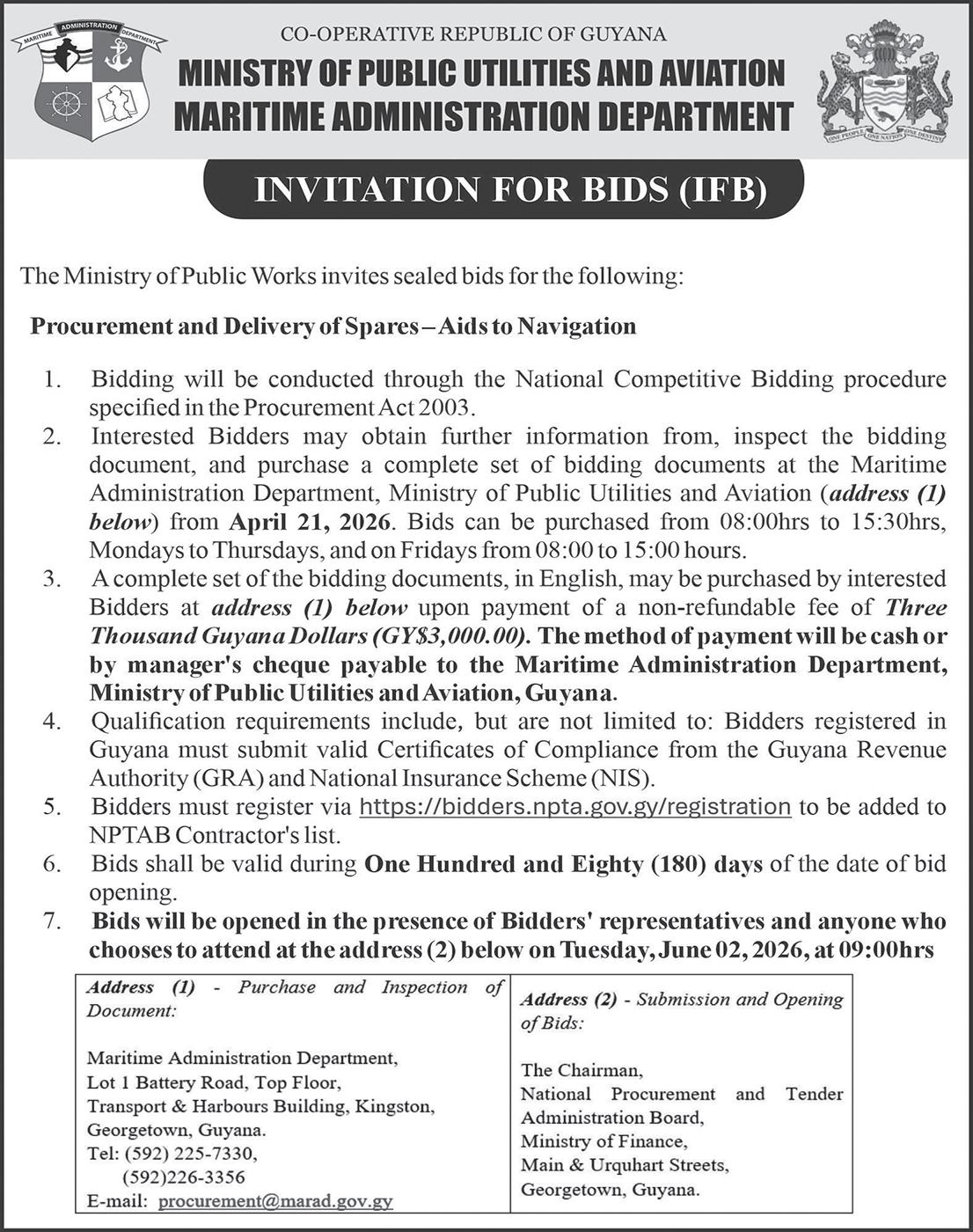 In December 2025, MARAD issued a statement saying it has observed the proliferation and unacceptable trend of the unauthorised use of the Guyana flag by vessels that are not registered in Guyana.