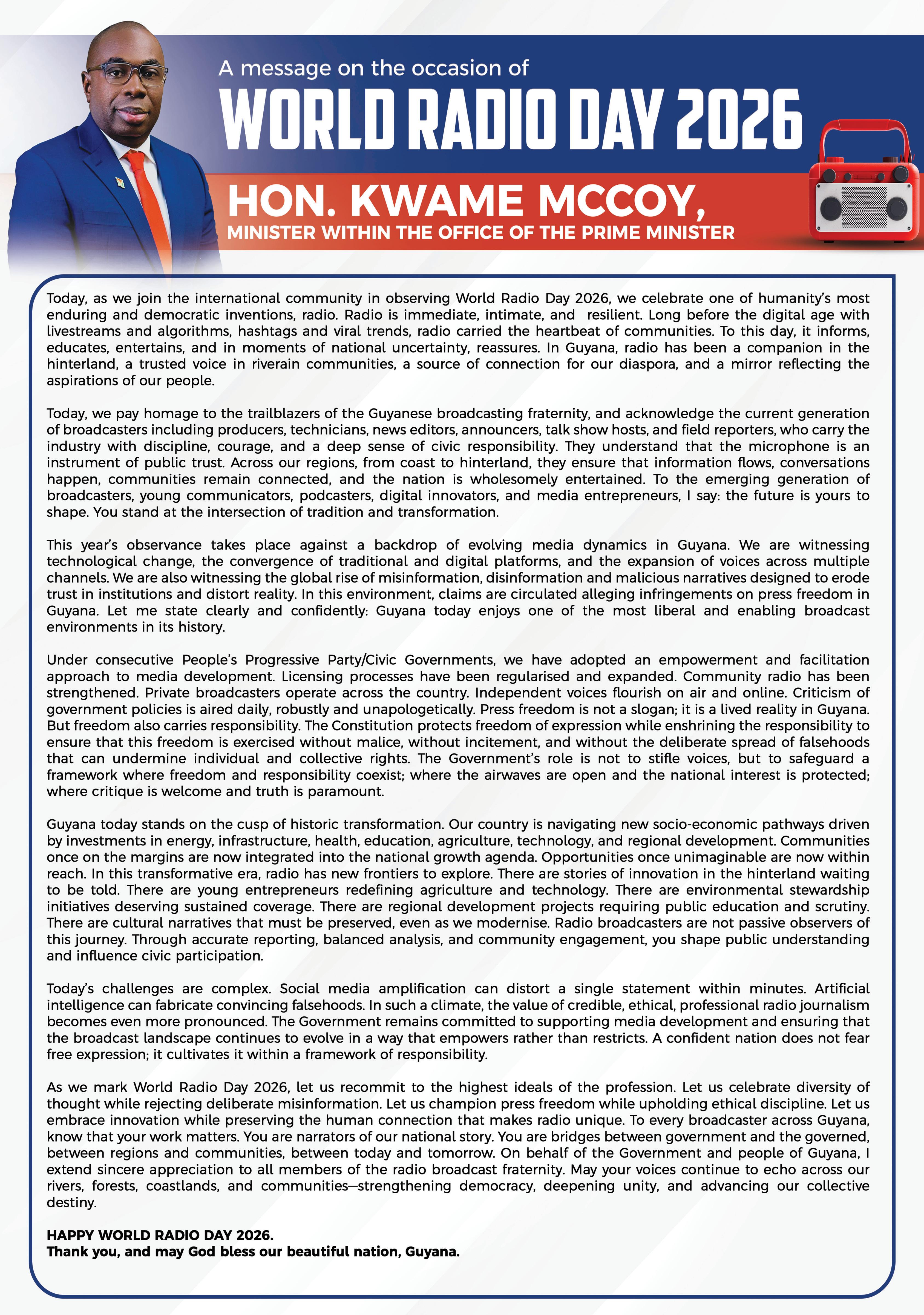month, in the month of March, Anna Regina, get ready – we’re about to open the national stadium for Anna Regina too, and it’s a fantastic facility that is being developed there, and for the people of Anna Regina, they will be excited,” Ramson declared.