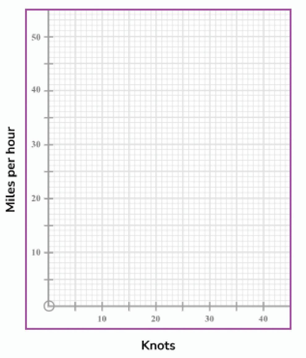 5. A knot is the speed unit used in sailing. One knot is equivalent to 1.15 miles per hour. Use the information above and the axes provided to draw a conversion graph for knots and miles per hour.