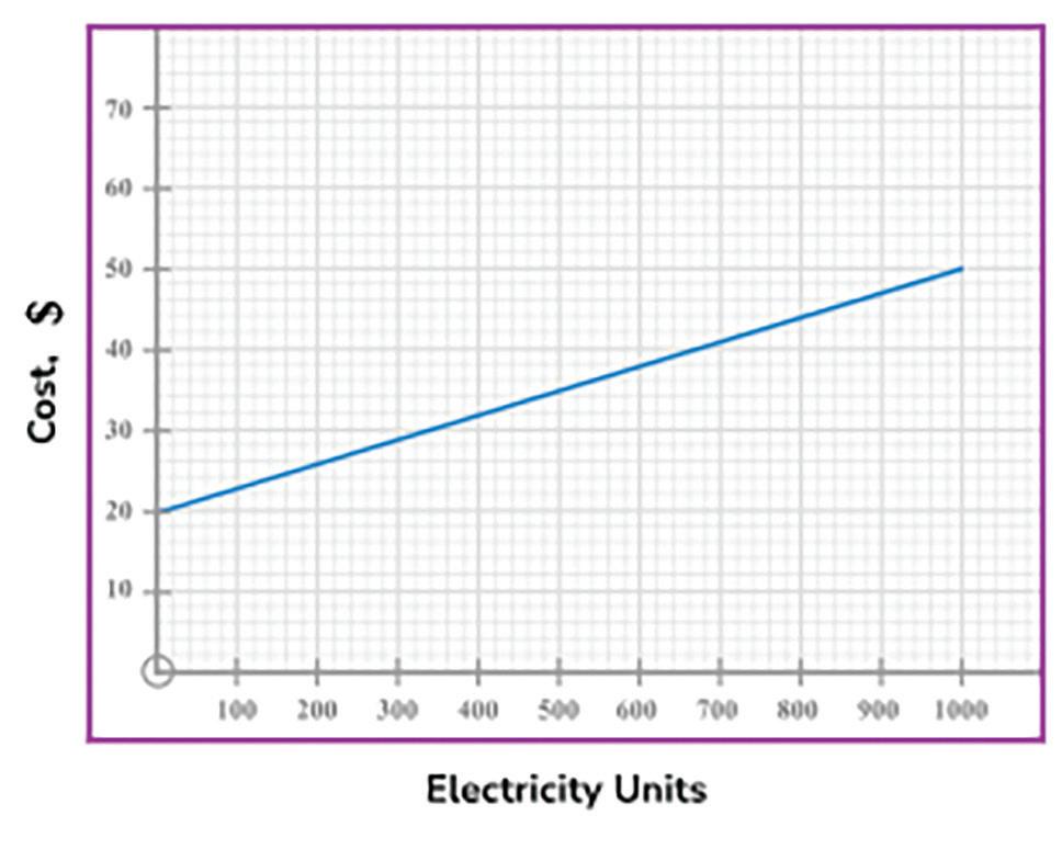 2. An electricity supplier charges a fixed fee and an additional price per unit of electricity used. The graph shows the conversion between electricity units used and the cost in $. What is the fixed fee?