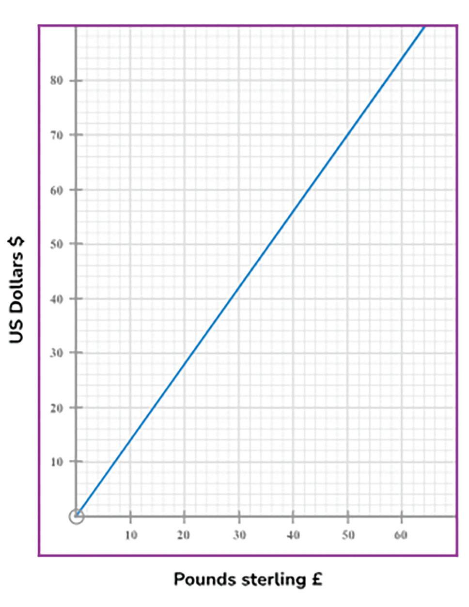 3. The graph shows the conversion between Pounds Sterling and US Dollars. Use the graph to convert £140 to $.