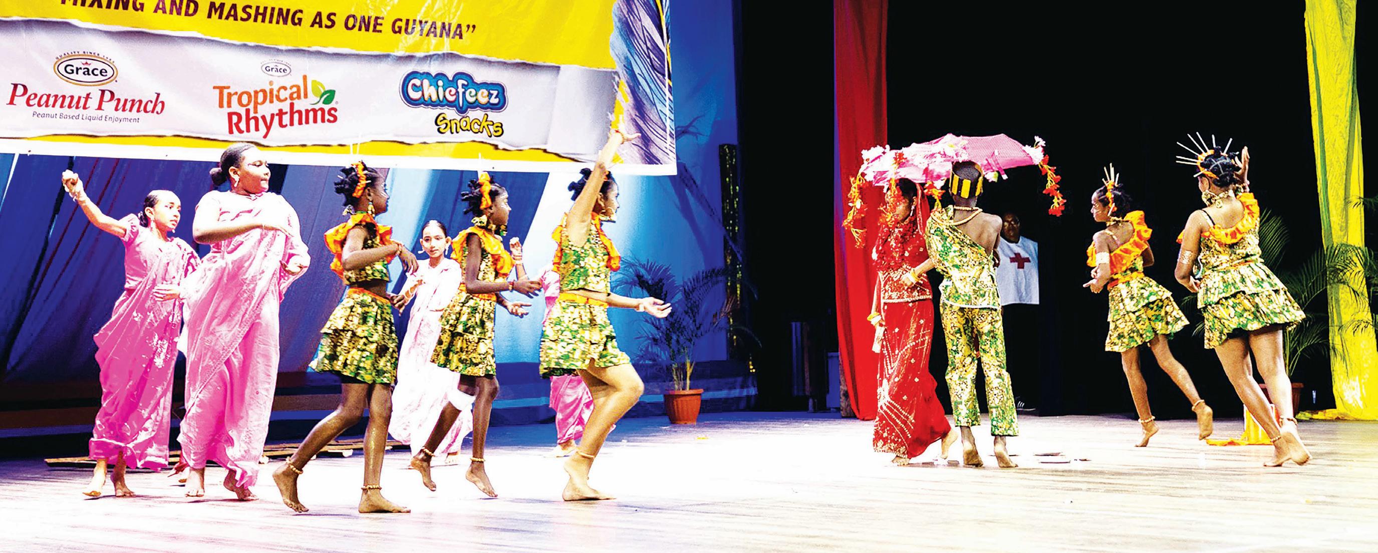 As the Education Ministry's Mashramani Children’s Competition continues at the National Cultural Centre on Thursday, a group of children performed a dance routine demonstrating a fusion of culture that depicts Guyana’s cultural diversity Page 3