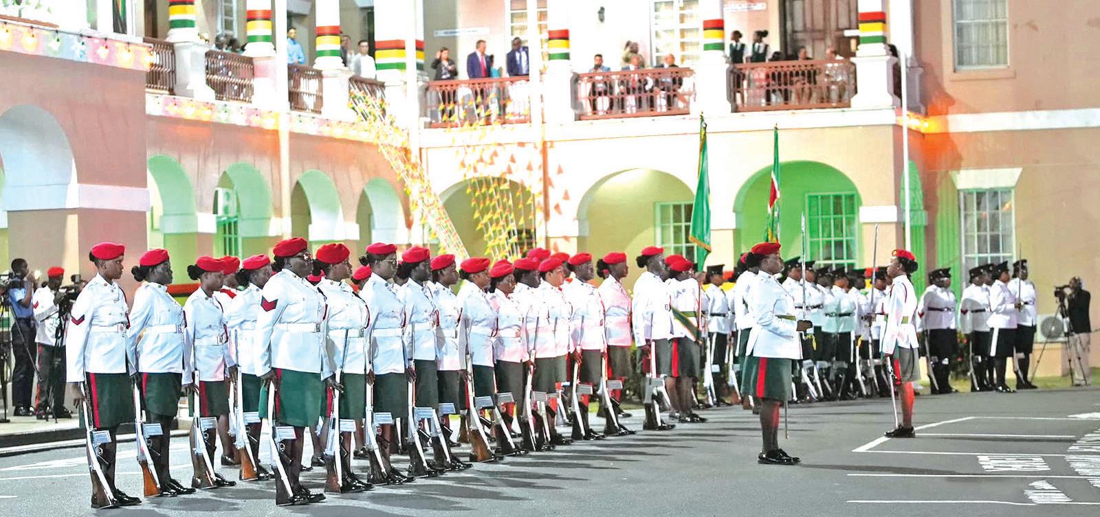 all-women Guard of Honour during the flag-raising ceremony to usher in Guyana’s 54th Republic Anniversary at Parliament Building on Thursday evening (Newsroom photo)