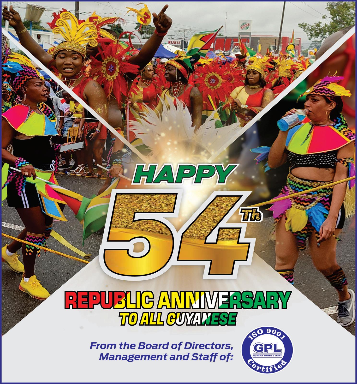 Today, we commemorate 54 years of being a republic, having cut all governance ties with Britain, which had ruled us for almost two centuries. Those who agitated for the rupturing of those ties went to great lengths to reveal and explain their exploitative nature, which left us so underdeveloped that after four centuries of the Dutch and the British using our human and physical resources for producing raw sugar, only this year we are finally proposing to refine that sugar for our own consumption rather than importing our sugar which was refined in Britain and resold to us at a premium.