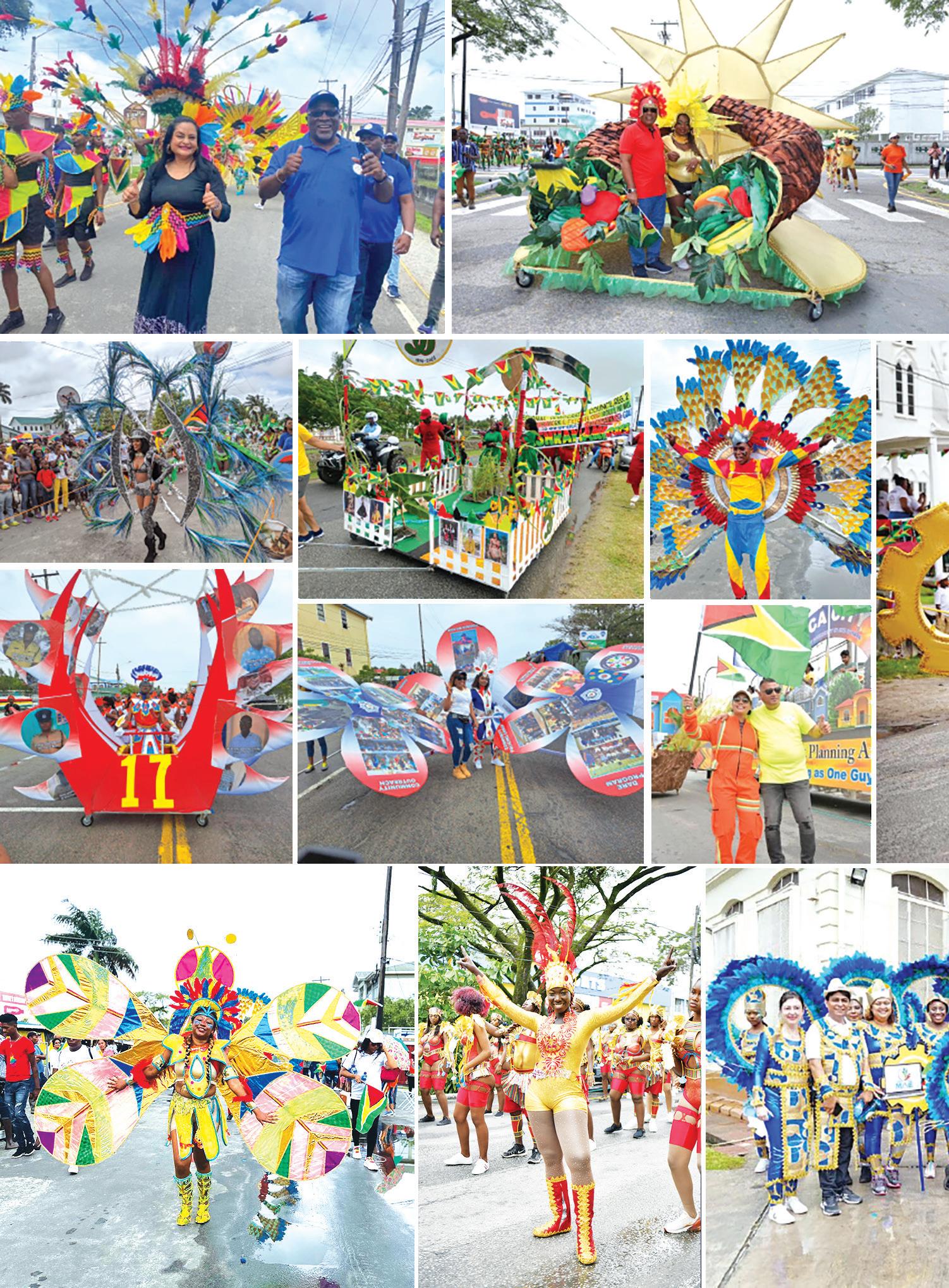 Guyanese from all walks of life in their creative costumes braved downpours to revel in this year’s costume and float parade in observance of Guyana’s 53rd Republic Anniversary, which was celebrated under the theme, “Mixing and Mashing as one Guyana.”