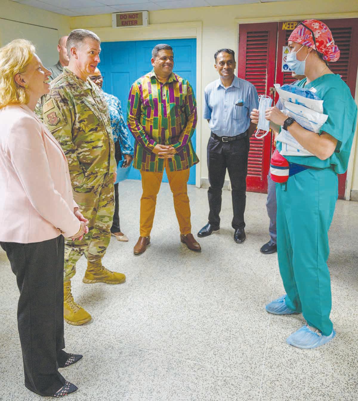 Lynch and members of the LAMAT interacting with medical personnel at the GPHC Guyana in a number of health areas, from fighting the HIV/ AIDS epidemic through the President’s Emerge Plan for AIDS Relief…(PEPFAR) to the tune of about US$189 million of relief, to providing COVID assistance through donating equipment, supplies, and more than 350,000 doses of COVID-19 vaccine,” Lynch highlighted.