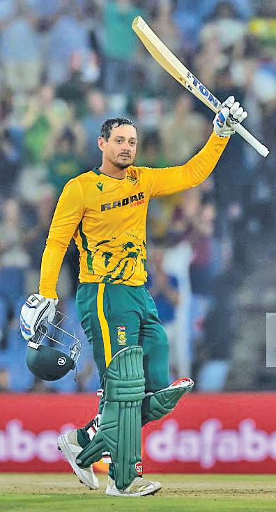 De Kock’s innings was reminiscent of his penultimate knock at home before he took a sabbatical, when he also scored a 43-ball 100 as South Africa chased a record target of 259 against West Indies at the same venue.