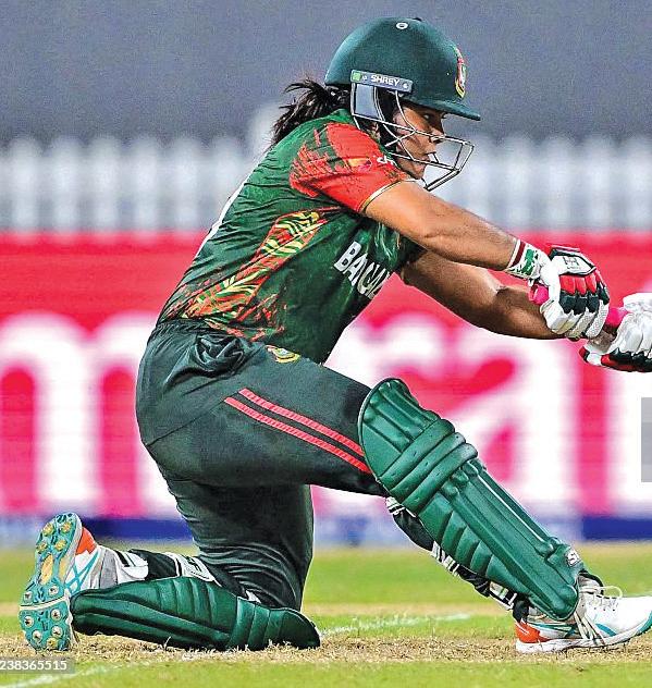 brought up the team's fifty with a slash through a backward point, and Nawaz hit back-to-back boundaries off Fahima. But Nawaz's stay at the crease was troubled. She was given out lbw to Fahima on 0 and reviewed. UltraEdge showed she had hit the ball. Three overs later, Nawaz was given not out off Rabeya Khan, and Bangladesh reviewed a close call. Replays showed the ball close to both the bat and the pad as it spun back in, and third umpire N Janani ruled it had hit the pad first.