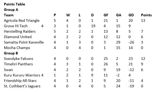 The main attraction on Sunday brings togeth er Friendship All-Stars and Soesdyke Falcons – leaders of Group B, and one of two un beaten teams in the League. The league’s other unbeaten team is Agricola Red Triangle of Group A.