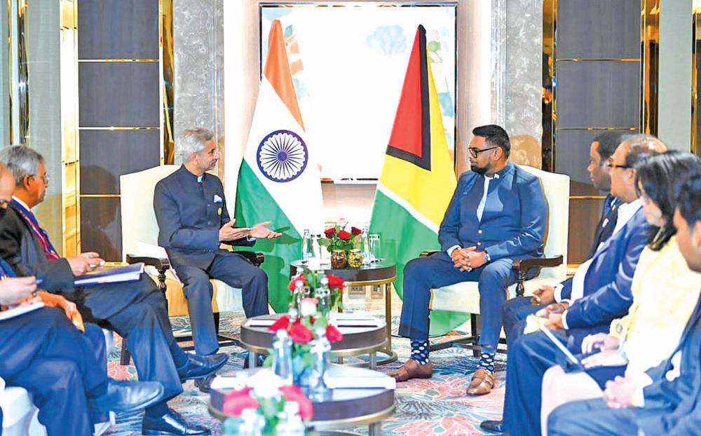 President Dr Irfaan Ali on Sunday met with India’s External Affairs Minister, Dr Subrahmanyam Jaishankar to have discussions on further strengthening bilateral ties between the two countries.
