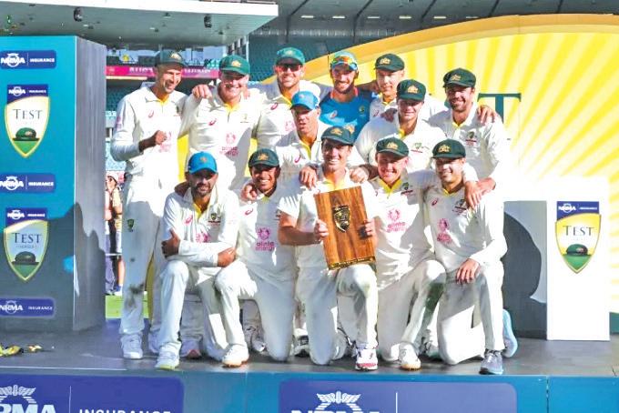 BOWLING O-M-R-W Josh Hazlewood 23-7-48-4 Pat Cummins 23-7-60-3 Nathan Lyon 40-16-88-2 Ashton Agar 14-3-30-0 Travis Head 7-1-21-1 Steven Smith 1-1-0-0 South Africa 2nd Innings (Following on) Sarel Erwee not out 42 Dean Elgar (c)c †Carey b Cummins 10 Heinrich Klaasen b Hazlewood 35 Temba Bavuma not out 17 Extras(nb 2) 2 TOTAL 41.5 Ov (RR: 2.53, 171 Mts) 106/2 Fall of wickets: 1-27 (Dean Elgar, 8.1 ov), 2-75 (Heinrich Klaasen, 26.6 ov) BOWLING O-M-R-W Josh Hazlewood 5-2-9-1