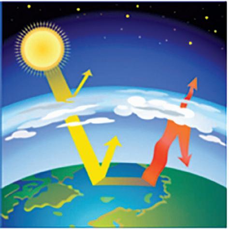 The greenhouse effect is a process that occurs when gases in Earth’s atmosphere trap the Sun’s heat. This process makes Earth much warmer than it would be without an atmosphere, because without an atmosphere all the Earth’s heat would dissipate into outer space. The greenhouse effect is one of the things that makes Earth a comfortable planet on which to live, but now we have too much of a good thing as too much heat is being trapped, overheating the earth.