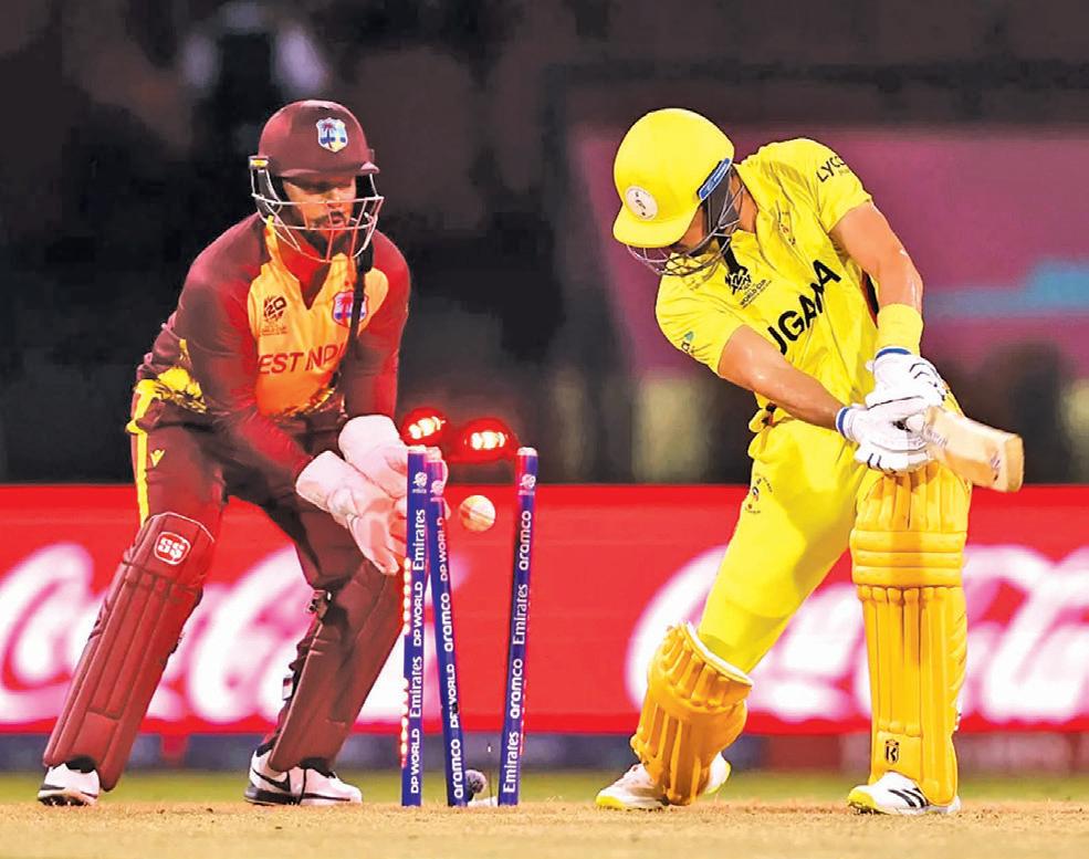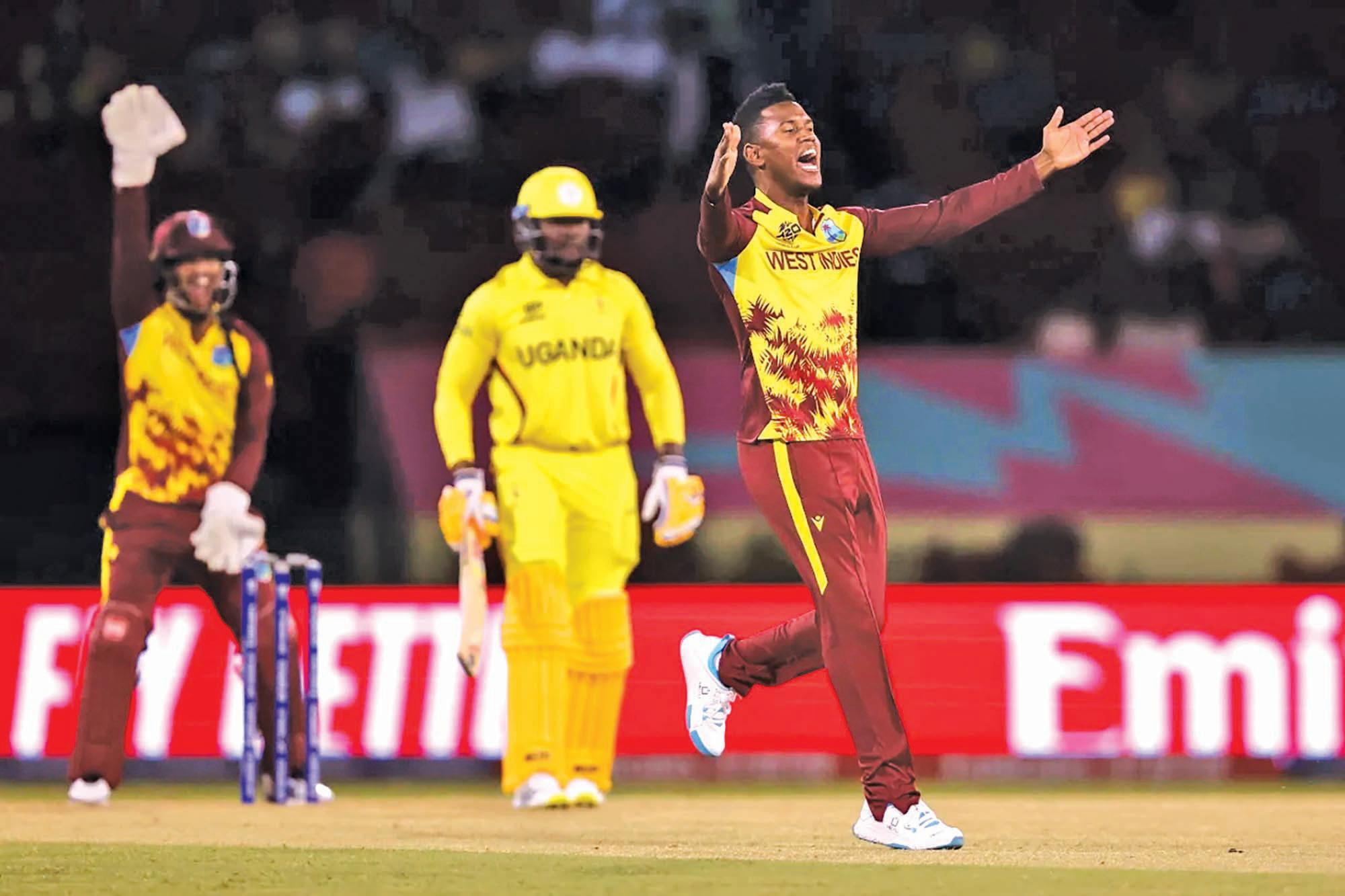 That spell sent West Indies hurtling to a 134run victory on a slow Providence deck. The seamers backed Hosein's spell up, delivering some excellent wicket balls of their own. Together they sent Uganda crashing to 39 all out – the joint-lowest total in the T20 World Cup.