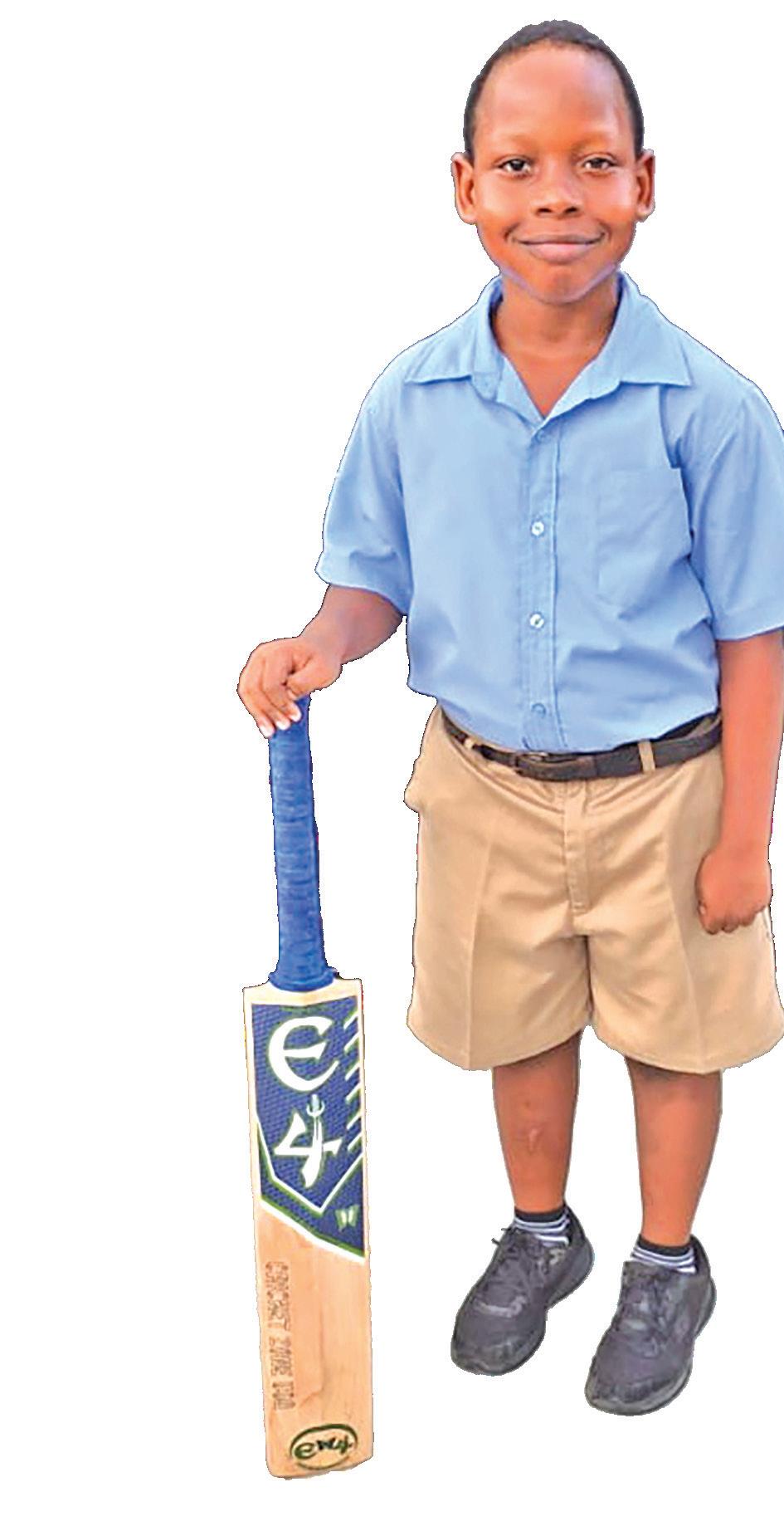 Eight-year-old Bryson Medford shows off his new bat